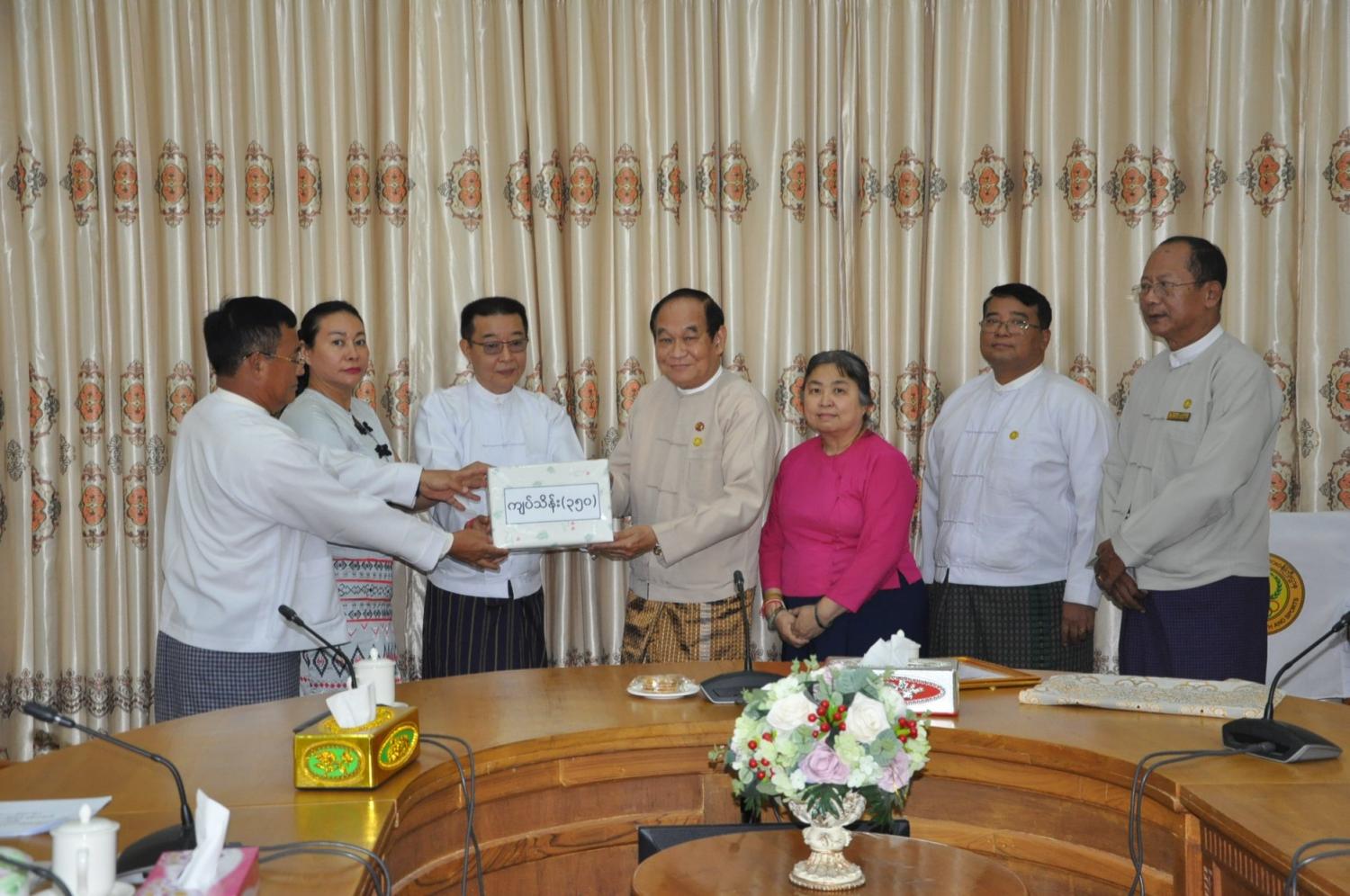 Coronavirus Disease 2019 (COVID - 19) ကာကွယ်၊ ထိန်းချုပ်၊ ကုသရေးအမျိုးသား အဆင့် ဗဟိုကော်မတီသို့ မြန်မာ့ရိုးရာ သနပ်ဖက်လိပ်လုပ်ငန်းရှင်များအသင်းမှ လှူဒါန်းသည့် ငွေကျပ်သိန်း (၃၅၀) နှင့် မန်းအောင်ငြိမ်းဖောင်ဒေးရှင်းမှ လှူဒါန်းသည့် ငွေကျပ်သိန်း (၅၀)တို့ကို ယနေ့ နေ့လယ် ပိုင်းတွင် Coronavirus Disease 2019 (COVID - 19) ကာကွယ်၊ ထိန်းချုပ်၊ ကုသရေး အမျိုးသား အဆင့် ဗဟိုကော်မတီ အတွင်းရေးမှူး (၂) ကျန်းမာရေးနှင့်အားကစားဝန်ကြီး ဌာန၊ ပြည်ထောင်စု ဝန်ကြီး ဒေါက်တာမြင့်ထွေးက ကျန်းမာရေးနှင့်အားကစားဝန်ကြီးဌာန၊ ရုံးအမှတ် (၄)၊ နေပြည်တော်တွင် လက်ခံခဲ့ပါသည်။