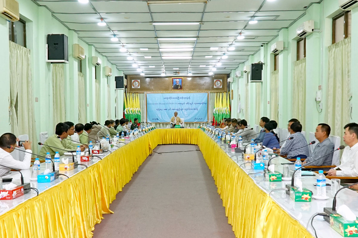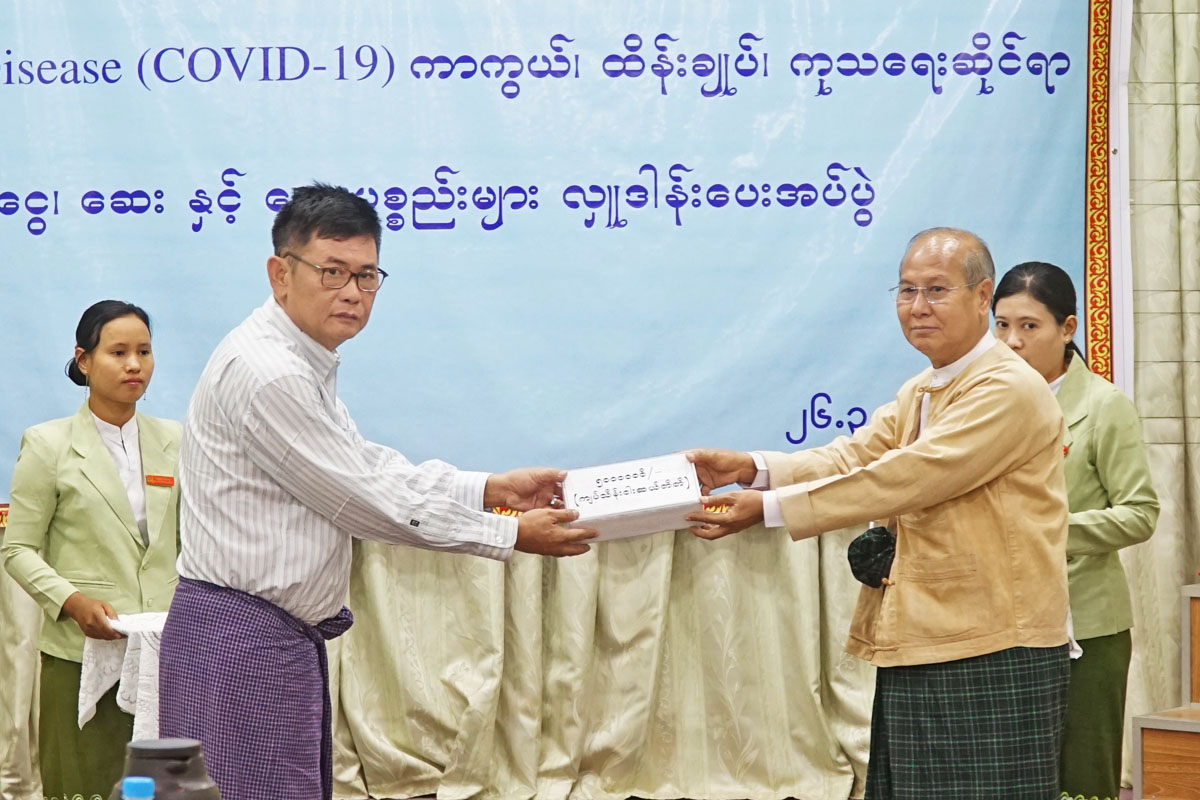 အခမ်းအနားတွင် ကိုရိုနာဗိုင်းရပ်စ် ကာကွယ်၊ ထိန်းချုပ်၊ကုသရေး တိုင်းဒေသကြီးအဆင့်ကြီးကြပ်မှု ကော်မတီ ဥက္ကဋ္ဌ တိုင်းဒေသကြီးအစိုးရအဖွဲ့ ဝန်ကြီးချုပ် ဒေါက်တာအောင်မိုးညိုက ဓနအင်အား နည်းပညာ အင်အား ကြီးမားလှသည့် ကမ္ဘာ့နိုင်ငံကြီးများလည်း အထိနာနေကြရကြောင်း၊ ကမ္ဘာ့ကပ်ရောဂါကို မိမိတို့ အနေဖြင့် မေတ္တာ ကရုဏာ သတိ ဝီရိယ ပညာတို့ကိုအားထားပြီး ရင်ဆိုင်ကြရမှာ ဖြစ်သလို အောင်မြင်မည် ဟုလည်း ယုံကြည်ကြောင်း၊ ရောဂါတိုက်ဖျက်ရေးအတွက် ကျန်းမာရေးဆိုင်ရာဝန်ထမ်းများ၊ အခြားဌာနဆိုင်ရာဝန်ထမ်းများကလည်း ကဏ္ဍအလိုက် အင်တိုက်အားတိုက် ဆောင်ရွက်နေကြကြောင်း၊ ရောဂါဖြစ်ပွားရာ နိုင်ငံများမှ ပြန်လည် ဝင်ရောက်သူများက ကျန်းမာရေးအတွက် ညွှန်ကြားချက်များနဲ့အညီ စစ်ဆေးခံ၍ အကန့်အသတ် များနှင့် နေထိုင်ကြကာ ပြည်ပမှပြန်လာသည့် ကျေးလက်ဒေသမှ လူငယ် မောင်မယ် များကလည်း ရပ်ရွာထဲသို့မဝင်ဘဲ ရွာပြင်တောထဲ နေရာတွေမှာ အကန့်အသတ်ဖြင့် နေထိုင် နေသည့် သတင်းများ ကြားသိရကြောင်း၊ တာဝန်ရှိသူများအနေဖြင့် ဆက်စပ်ကူညီဆောင်ရွက် ပေးစေလို ကြောင်း၊ လူအများ ထိတ်လန့်စေရန် လူ့အဖွဲ့အစည်းအတွင်း ရပ်ရွာအတွင်း မတည်မငြိမ်စေရန် ကောလ ဟာလများကို ထုတ်လွှင့်လျက်ရှိကြကြောင်း၊ မိမိတို့ ရင်ဆိုင်နေကြရသည့် ကပ်ရောဂါမှာ ကူစက်မြန် သေစေနိုင်သည့် ရောဂါဖြစ်သော်လည်း ထိန်းချုပ်နိုင်သည့်ရောဂါ၊ ကူးစက်ခံရတိုင်းလည်း မသေနိုင် သည့် ရောဂါ စောစီးစွာကုသမှုခံယူပါက ပျောက်ကင်းနိုင်သည့် ရောဂါဖြစ်ကြောင်း အလှူရှင်များ ကလည်း ဒေသအလိုက် လှူဒါန်းမှု ပြုနေကြသလို လူမှုရေးအသင်းအဖွဲ့များ၊ ဘာသာရေး အသင်းအဖွဲ့များကလည်း လိုအပ်သည်များကို ပါဝင်ကူညီဖြည့်ဆည်းဆောင်ရွက်ပေးနေသည့် အတွက် ဂုဏ်ယူဝမ်းမြောက်ပါကြောင်း၊ ဒီအတွက် မိမိတို့ လူသား အချင်းချင်း မေတ္တာတရားပွားများကာ ညီညွတ်စွာဖြင့် သတိ ဝီရိယ ပညာတို့ကို စွဲကိုင်ထားပြီး ရင်ဆိုင်ကျော်လွှားကြရမှာဖြစ်ပါကြောင်း ပြောကြားခဲ့သည်။