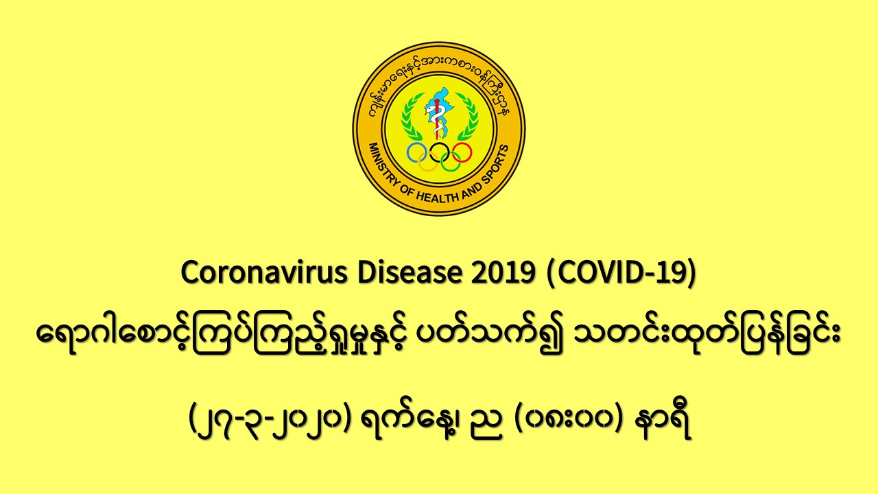 ၁။ကျန်းမာရေးနှင့်အားကစားဝန်ကြီးဌာနသည် ကမ္ဘာ့နိုင်ငံများတွင် ကူးစက်ပျံ့နှံ့လျက်ရှိသည့် COVID-19 လတ်တလော အသက်ရှူလမ်းကြောင်းဆိုင်ရာ ရောဂါဖြစ်ပွားမှုဖြစ်စဉ်နှင့်ပတ်သက်၍ ရောဂါစောင့်ကြပ်ကြည့်ရှုခြင်း လုပ်ငန်းများအား အပြည်ပြည်ဆိုင်ရာ ဝင်ပေါက်၊ ထွက်ပေါက်ဂိတ် များတွင်လည်းကောင်း၊ ဆေးရုံအခြေပြုအဖြစ်လည်းကောင်း၊ ပြည်သူလူထု အခြေပြု စောင့်ကြပ် ကြည့်ရှုခြင်းလုပ်ငန်းများဖြင့်လည်းကောင်း၊ ပုဂ္ဂလိကဆေးရုံများနှင့် ပူးပေါင်း၍လည်းကောင်း ဆောင်ရွက် လျက်ရှိပါသည်။
