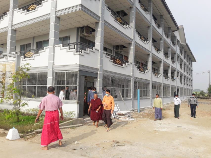 (COVID-19)ရောဂါစောင့်ကြည့်လူနာများ ထားရှိနိုင်မှုကို ရန်ကုန်တိုင်းဒေသကြီးအစိုးရအဖွဲ့မှ ဝန်ကြီးချုပ် ဦးဖြိုးမင်းသိန်း၊ လုံခြုံရေးနှင့်နယ်စပ်ရေးရာဝန်ကြီး ဗိုလ်မှူးကြီးအောင်စိုးမိုး၊ အလုပ်သမား၊ လူဝင်မှုကြီးကြပ်ရေးနှင့် အမျိုးသား မှတ်ပုံတင်ရေးဝန်ကြီးဌာန ဒေါ်မိုမိုးစုကြည်၊ လမ်းပန်းဆက်သွယ်ရေးဝန်ကြီး ဒေါ်နီလာကျော်၊ တိုင်းဒေသကြီးအစိုးရအဖွဲ့ အတွင်းရေးမှူး ဒုတိယညွှန်ကြားရေးမှူးချုပ် ဦးမျိုးအောင်ဌေး၊ မြောက်ပိုင်းခရိုင်အုပ်ချုပ်ရေးမှူး ဦးစိုးသိန်း၊ မြို့နယ် အုပ်ချုပ်ရေးမှူး ဦးဌေးအောင်နှင့် မြို့နယ်အဆင့်ဌာနဆိုင်ရာ တာဝန်ရှိသူများမှ လှည့်လည် ကြည့်ရှုခဲ့ကြောင်း သိရသည်။