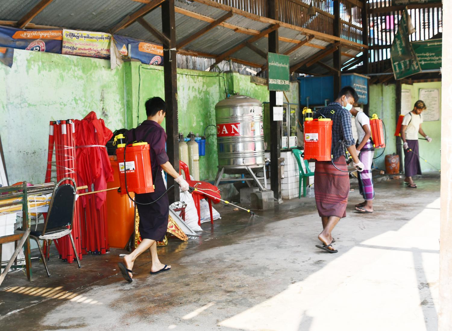 ပန်းဘဲတန်းမြို့နယ် ရပ်မိရပ်ဖ ဦးမောင်မောင်က “ ဒီကနေ့ ၈ရပ်ကွက်မှာရှိတဲ့ လူကြီးလူငယ်နှင့် စုပေါင်းအလှူရှင်တွေပေါင်းပြီး ရေဖျန်းတယ်၊ ပိုးသတ်ဆေးဖျန်းတယ်။ အရင်ရက်တွေက ၅ ရပ်ကွက်နဲ့ ၃ရပ်ကွက်မှာ ဖျန်းပြီးပြီ။ အချို့မြို့နယ်တွေမှာလည်း စည်ပင်သာယာရေးကော်မတီ မီးသတ်တပ်ဖွဲ့ဝင်တွေနဲ့ မြို့နယ်အလိုက် တာဝန်ရှိသူတွေ ပိုးသတ်ဆေးဖျန်းတာတွေ့ရတယ်။ ဘာသာရေးအဆောက်အဦးတွေနဲ့ ဝတ်ပြုဆောင်တွေမှာတော့ နဂိုရှိတဲ့ဝန်ထမ်းတွေပဲရှိတယ်။ နိုင်ငံတော်ကထုတ်ပြန် ထားတဲ့အတိုင်း ဝတ်ပြုခွင့် တွေကို ယာယီဆိုင်းငံ့ထားတယ်။ သက်ဆိုင်ရာဘာသာရေး ဆရာတွေရဲ့ ညွှန်ကြားချက်တွေအတိုင်း ဆောင်ရွက်နေပါတယ်”ဟုပြောသည်။