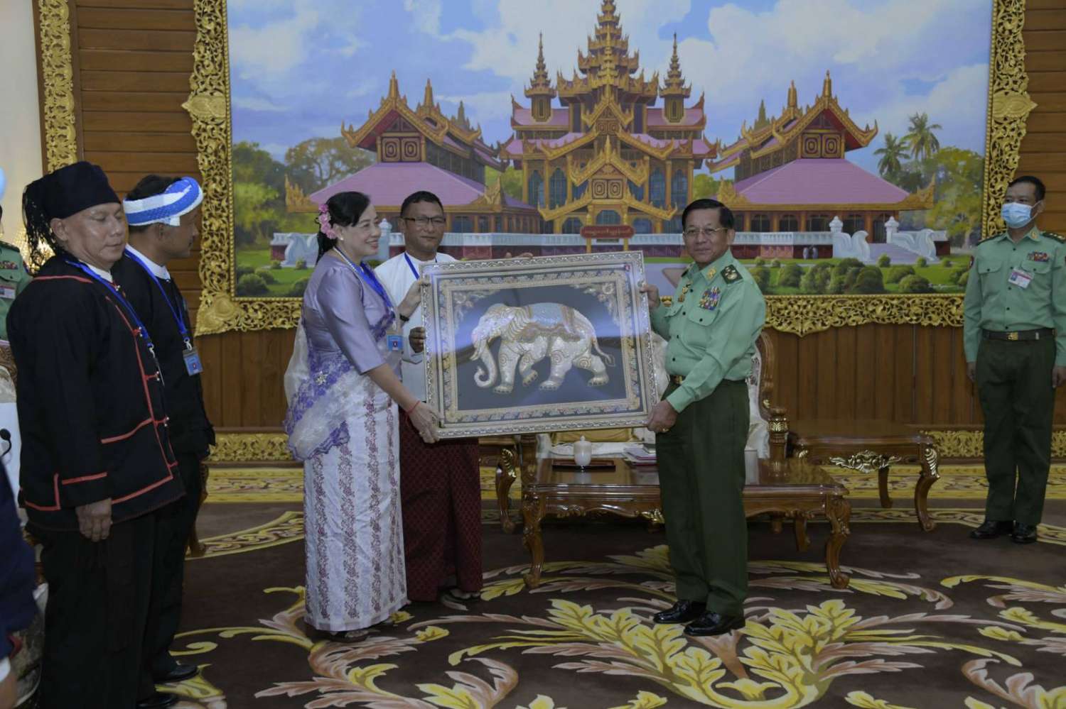 တွေ့ဆုံပွဲအပြီးတွင် နိုင်ငံတော်စီမံအုပ်ချုပ်ရေးကောင်စီဥက္ကဋ္ဌ တပ်မတော် ကာကွယ်ရေးဦးစီးချုပ်က တက်ရောက်လာကြသည့် ငြိမ်းချမ်းရေးကိုယ်စားလှယ်များအား အမှတ်တရ လက်ဆောင်ပစ္စည်းများ ပေးအပ်ခဲ့ပြီး ငြိမ်းချမ်းရေးကိုယ်စားလှယ်များက လက်ဆောင်ပစ္စည်းများကို ပြန်လည်ပေးအပ် ကြသည်။