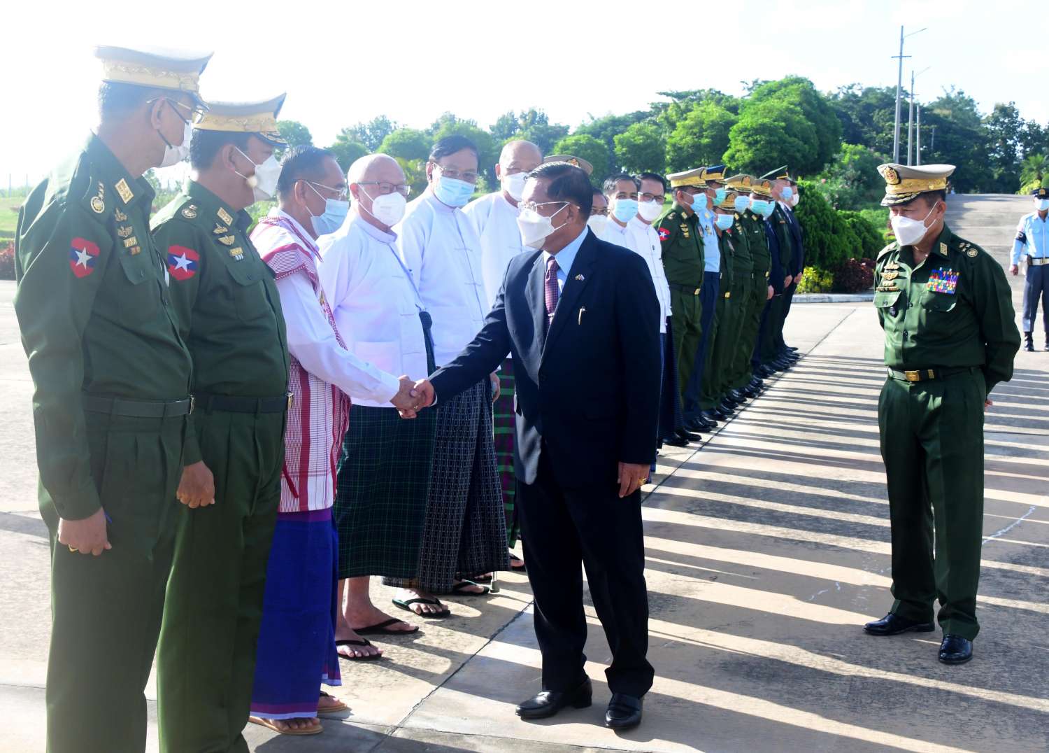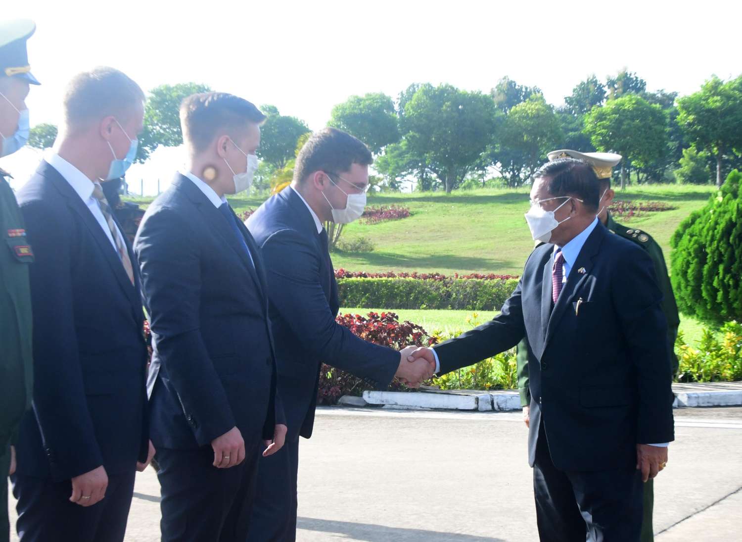 နိုင်ငံတော် စီမံအုပ်ချုပ်ရေးကောင်စီဥက္ကဋ္ဌ၊ နိုင်ငံတော်ဝန်ကြီးချုပ် ဦးဆောင်သည့် မြန်မာအဆင့်မြင့် ကိုယ်စားလှယ်အဖွဲ့သည် ရုရှားဖက်ဒရေးရှင်းနိုင်ငံ၊ ဗလာဒီဗော့ စတော့ခ် အပြည်ပြည်ဆိုင်ရာလေဆိပ်သို့ ဒေသစံတော်ချိန် ညနေပိုင်းတွင် ရောက်ရှိကြရာ ဗလာဒီဗော့စတော့ခ် ဒုတိယပြည်နယ်အုပ်ချုပ်ရေးမှူး Mr. Stegniy Daria နှင့် တာဝန်ရှိသူများ၊ ရုရှားနိုင်ငံဆိုင်ရာ မြန်မာနိုင်ငံသံအမတ်ကြီး ဦးလွင်ဦးနှင့် မြန်မာစစ်သံ (ကြည်း၊ ရေ၊ လေ) ဗိုလ်မှူးချုပ် မိုးကျော်၊ နိုင်ငံခြားရေးဝန်ကြီးဌာန၊ သံတမန်ရေးရာဦးစီးဌာန ညွှန်ကြားရေးမှူးချုပ်နှင့် တာဝန်ရှိသူများက ကြိုဆိုနှုတ်ဆက်ခဲ့ကြကြောင်း သတင်းရရှိသည်။