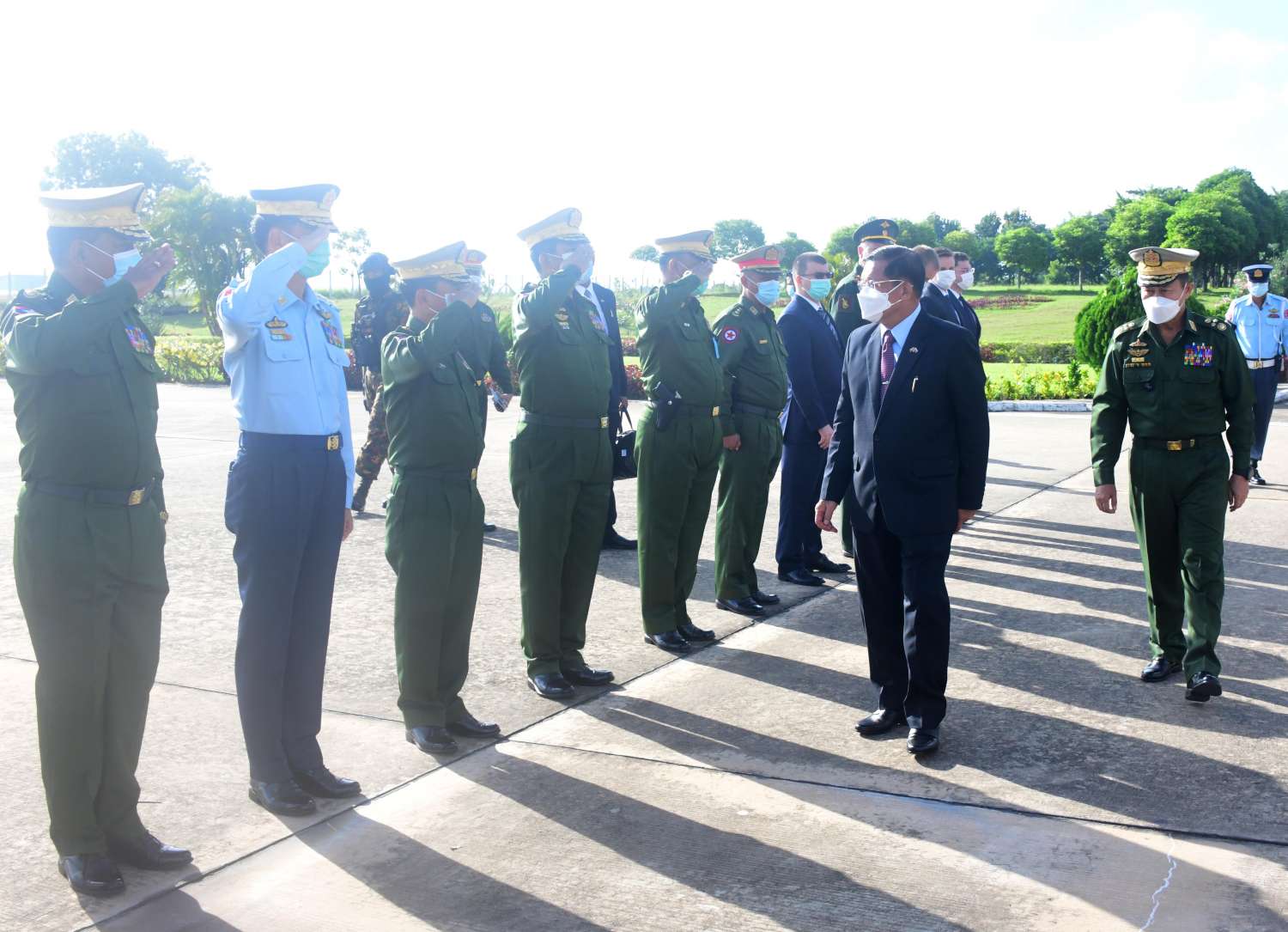 နိုင်ငံတော်စီမံအုပ်ချုပ်ရေး ကောင်စီဥက္ကဋ္ဌ နိုင်ငံတော်ဝန်ကြီးချုပ် ဦးဆောင်သည့် မြန်မာအဆင့်မြင့် ကိုယ်စားလှယ်အဖွဲ့အား ကောင်စီဒုတိယဥက္ကဋ္ဌ၊ ဒုတိယဝန်ကြီးချုပ် ဒုတိယဗိုလ်ချုပ်မှူးကြီး စိုးဝင်း၊ ကောင်စီဝင်များ၊ ကောင်စီအတွင်းရေးမှူး၊ ပြည်ထောင်စုဝန်ကြီးများ၊ ကာကွယ်ရေးဦးစီးချုပ်ရုံး (ကြည်း)မှ တပ်မတော် အရာရှိကြီးများ၊ နေပြည်တော်တိုင်း စစ်ဌာနချုပ်တိုင်းမှူး၊ မြန်မာနိုင်ငံဆိုင်ရာ ရုရှားဖက်ဒရေးရှင်း နိုင်ငံသံရုံးမှ သံရုံး ဒုတိယအကြီးအကဲ Mr. Pavel A.KLABUKOV၊ စစ်သံမှူး Colonel Sergei KURCHENKO နှင့် တာဝန်ရှိသူများက လေဆိပ်၌ ပို့ဆောင်နှုတ်ဆက်ကြသည်။