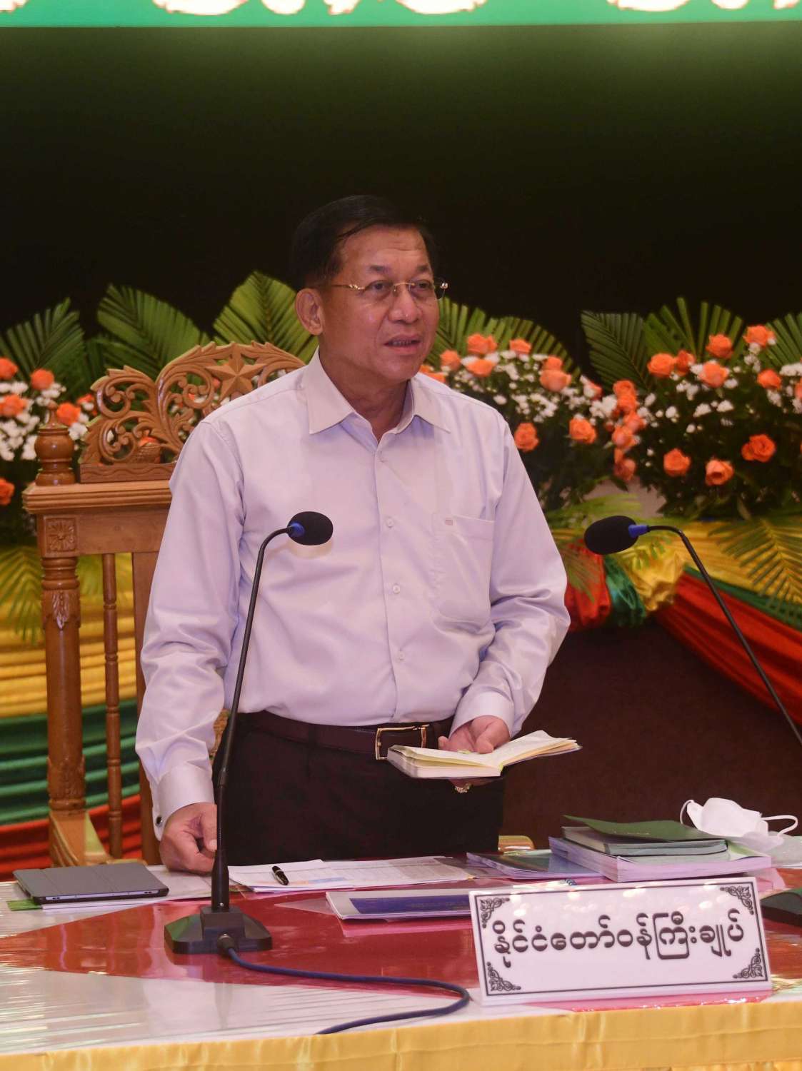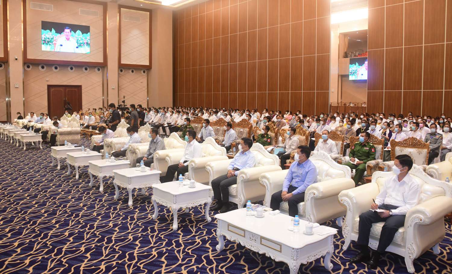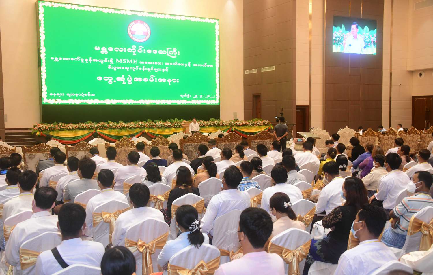 နိုင်ငံတော် စီမံအုပ်ချုပ်ရေးကောင်စီ ဥက္ကဋ္ဌ နိုင်ငံတော် ဝန်ကြီးချုပ် ဗိုလ်ချုပ်မှူးကြီး မင်းအောင်လှိုင် သည် ယနေ့နံနက်ပိုင်းတွင် မန္တလေး စက်မှုဇုန် အတွင်းရှိ အသေးစား၊ အငယ်စားနှင့် အလတ်စား စီးပွားရေး (MSME) လုပ်ငန်းရှင်များအား ရတနာပုံခန်းမ၌ တွေ့ဆုံ၍ MSME လုပ်ငန်းများ ဖွံ့ဖြိုး တိုးတက်ရေး အတွက် ဆွေးနွေး ပြောကြားသည်။