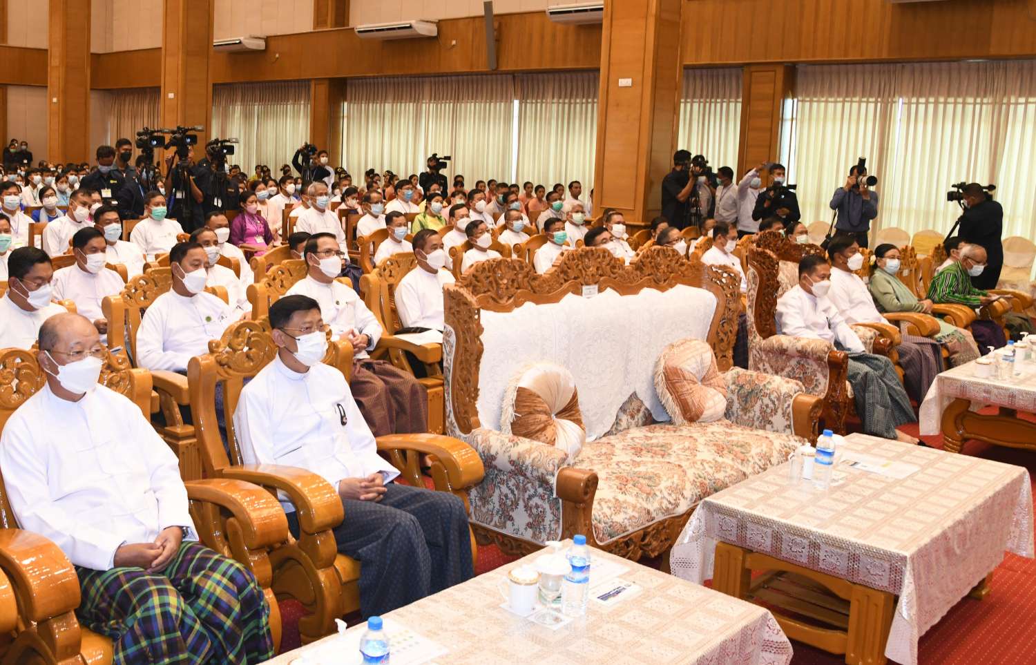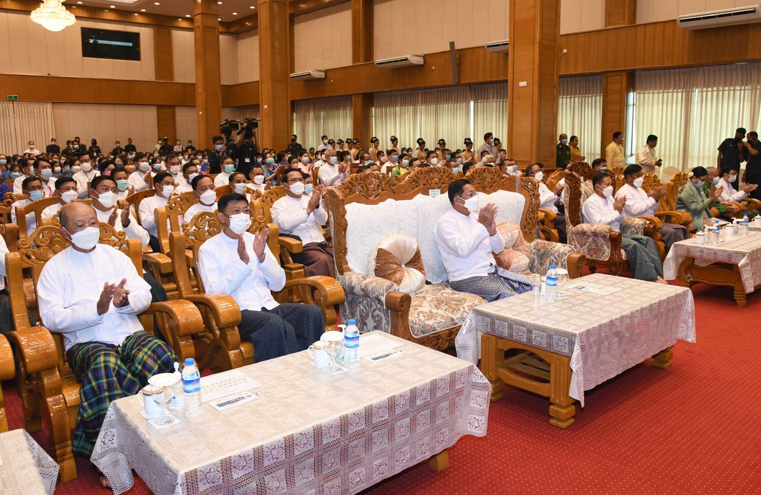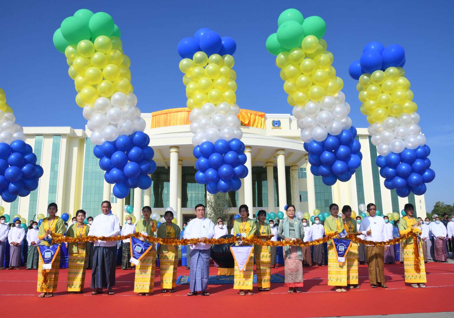 အခမ်းအနားသို့ နိုင်ငံတော်စီမံအုပ်ချုပ်ရေးကောင်စီ ဒုတိယဥက္ကဋ္ဌ ဒုတိယဝန်ကြီးချုပ် ဒုတိယဗိုလ်ချုပ်မှူးကြီးစိုးဝင်း၊ ကောင်စီဝင်များဖြစ်ကြသည့် ဗိုလ်ချုပ်ကြီး မြထွန်းဦး၊ ဗိုလ်ချုပ်ကြီး တင်အောင်စန်း၊ ဒေါ်အေးနုစိန်၊ Jean Phang နော်တောင်၊ ဦးမောင်းဟာနှင့် ဦးစိုင်းလုံးဆိုင် ပြည်ထောင်စုဝန်ကြီးများနှင့် ပြည်ထောင်စုအဆင့်ပုဂ္ဂိုလ်များ၊ နေပြည်တော်ကောင်စီဥက္ကဋ္ဌ၊ တပ်မတော်အရာရှိကြီးများ၊ နေပြည်တော်တိုင်း စစ်ဌာနချုပ်တိုင်းမှူး၊ ဒုတိယဝန်ကြီးများ၊ ဖိတ်ကြားထားသူများ၊ ဆရာ၊ ဆရာမများနှင့် ကျောင်းသား၊ ကျောင်းသူများ တက်ရောက်ကြသည်။