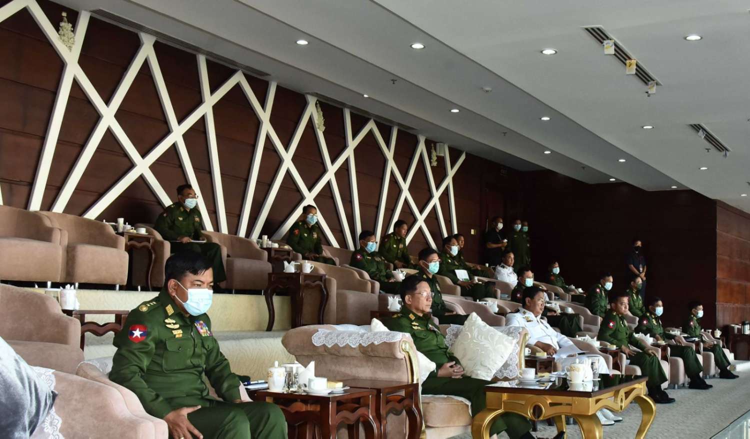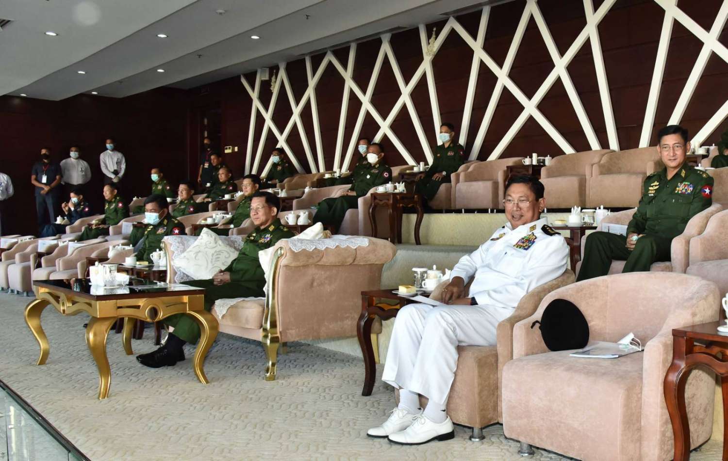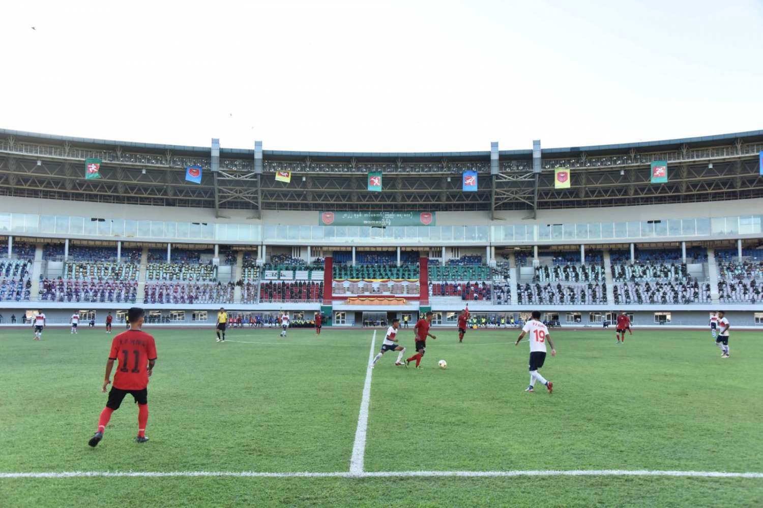 ၂ဝ၂၂ ခုနှစ်၊ တပ်မတော် (ကြည်း၊ ရေ၊ လေ) အားကစားပြိုင်ပွဲ၊ တပ်မတော်ကာကွယ်ရေးဦးစီးချုပ်ဖလား(ခ)အဆင့် ဘောလုံးပြိုင်ပွဲဗိုလ်လုပွဲ ပွဲစဉ်အဖြစ် အရှေ့မြောက်တိုင်းစစ်ဌာနချုပ် ကိုယ်စားပြုဘောလုံးအသင်းနှင့် အရှေ့တောင်တိုင်းစစ်ဌာနချူပ်ကိုယ်စားပြု ဘောလုံးအသင်းတို့သည် ယနေ့ညနေပိုင်းတွင် ဇေယျာသီရိတပ်မတော်အားကစားကွင်း၌ ယှဉ်ပြိုင်ကစားကြရာ နိုင်ငံတော်စီမံအုပ်ချုပ်ရေးကောင်စီဥက္ကဋ္ဌ တပ်မတော်ကာကွယ်ရေးဦးစီးချုပ် ဗိုလ်ချုပ်မှူးကြီးမင်းအောင်လှိုင် တက်ရောက်ကြည့်ရှုအားပေးသည်။