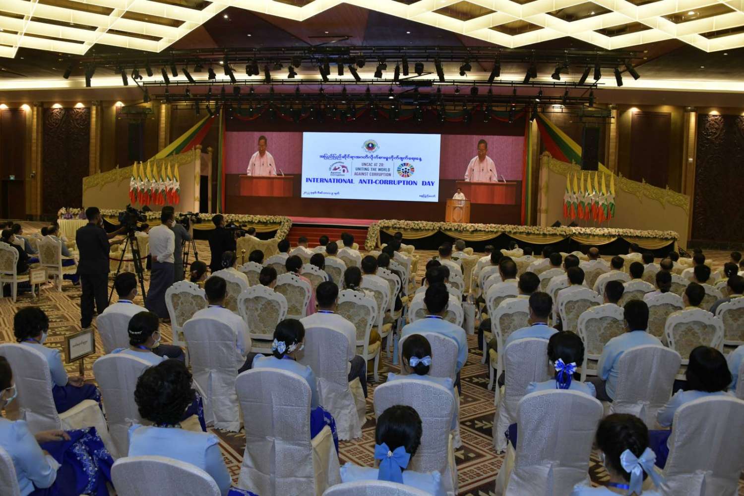 အပြည်ပြည်ဆိုင်ရာ အဂတိလိုက်စားမှုတိုက်ဖျက်ရေးနေ့အခမ်းအနားကို ယနေ့နံနက်ပိုင်းတွင် နေပြည်တော်ရှိ မြန်မာအပြည်ပြည်ဆိုင်ရာကွန်ဗင်းရှင်း ဗဟိုဌာန-၁ ၌ ကျင်းပပြုလုပ်ရာ နိုင်ငံတော်စီမံအုပ်ချုပ်ရေးကောင်စီဥက္ကဋ္ဌ နိုင်ငံတော်ဝန်ကြီးချုပ် ဗိုလ်ချုပ်မှူးကြီး မင်းအောင်လှိုင် တက်ရောက်အမှာစကားပြောကြားသည်။