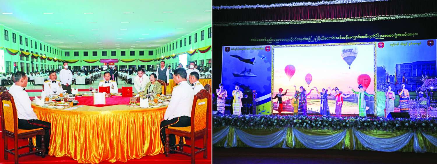 ညပိုင်းတွင် နိုင်ငံတော်စီမံအုပ်ချုပ်ရေးကောင်စီ ဒုတိယဥက္ကဋ္ဌ ဒုတိယတပ်မတော်ကာကွယ်ရေးဦးစီးချုပ် ကာကွယ်ရေးဦးစီးချုပ်(ကြည်း) ဒုတိယဗိုလ်ချုပ်မှူးကြီး စိုးဝင်းနှင့်အဖွဲ့ဝင်များသည် တပ်မတော်နည်းပညာတက္ကသိုလ် ဗိုလ်လောင်းသင်တန်း အမှတ်စဉ်(၂၄) သင်တန်းဆင်းဂုဏ်ပြု ညစာစားပွဲအခမ်းအနားသို့ တက်ရောက်ချီးမြှင့်ခဲ့ကြောင်းနှင့် ညစာမသုံးဆောင်မီနှင့် သုံးဆောင်‌နေစဉ်အတွင်း ကာကွယ်ရေးဦးစီးချုပ်ရုံး (ကြည်း) ပြည်သူ့ဆက်ဆံရေးနှင့် စိတ်ဓာတ်စစ်ဆင်ရေးညွှန်ကြားရေးမှူးရုံး ကွပ်ကဲမှုအောက် မြဝတီတေးဂီတအဖွဲ့က တေးသီချင်းများဖြင့် သီဆိုတီးမှုတ်ဖျော်ဖြေကြရာ နိုင်ငံတော်စီမံအုပ်ချုပ်ရေးကောင်စီ ဒုတိယဥက္ကဋ္ဌ ဒုတိယတပ်မတော်ကာကွယ်ရေး ဦးစီးချုပ်ကာကွယ်ရေးဦးစီးချုပ်(ကြည်း)နှင့် တက်ရောက်လာကြသူများက ကြည့်ရှုအားပေးခဲ့ကြောင်း သတင်းရရှိသည်။