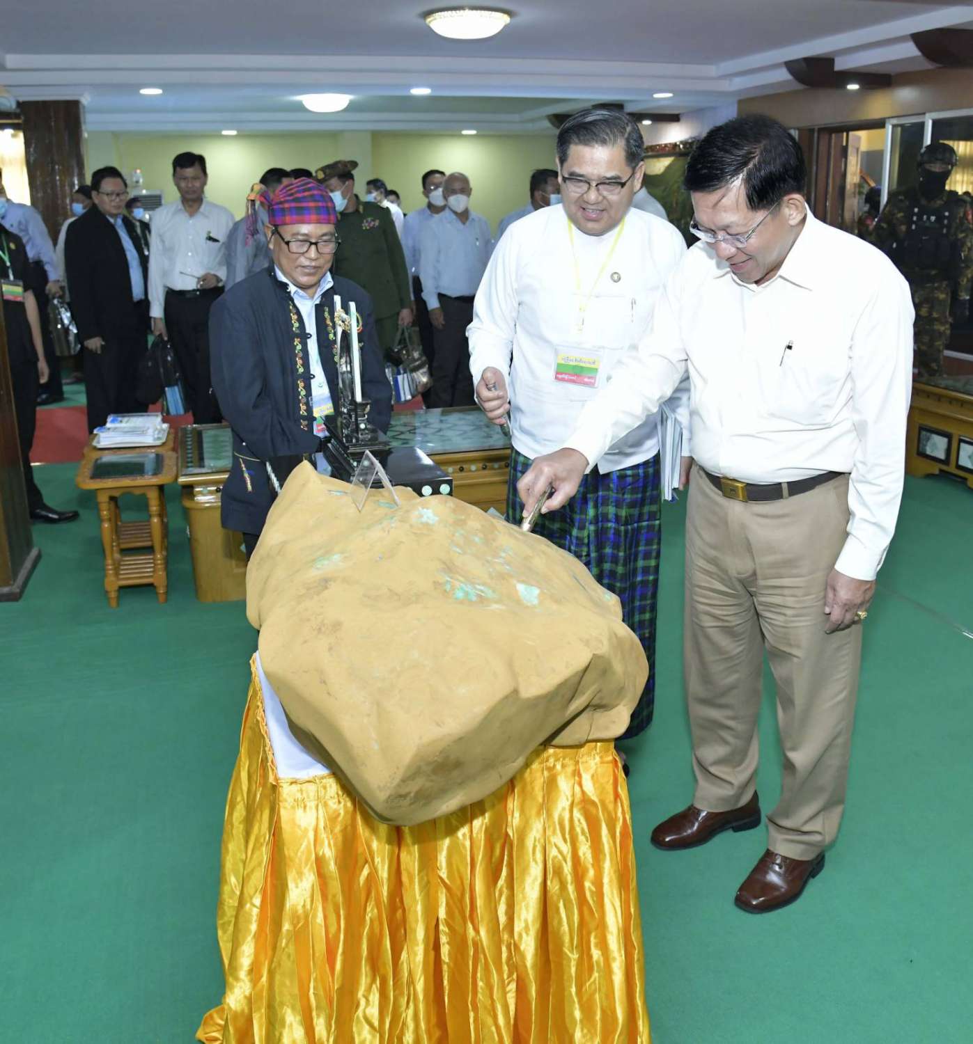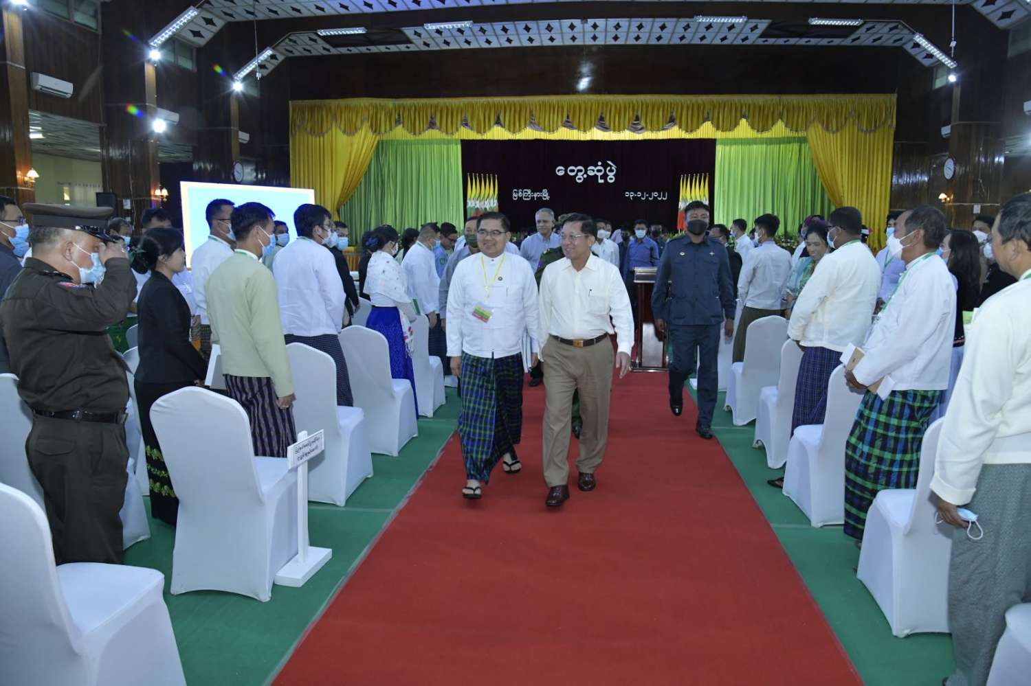 အဆိုပါ တွေ့ဆုံပွဲသို့ နိုင်ငံတော်စီမံအုပ်ချုပ်ရေးကောင်စီဥက္ကဋ္ဌ နိုင်ငံတော်ဝန်ကြီးချုပ်နှင့်အတူ ကောင်စီတွဲဖက်အတွင်းရေးမှူး ဒုတိယဗိုလ်ချုပ်ကြီး ရဲဝင်းဦး၊ ကောင်စီဝင် Jeng Phang နော်တောင်၊ စောဒန်နီယယ်၊ ပြည်ထောင်စုဝန်ကြီးများဖြစ်ကြသည့် ဒုတိယဗိုလ်ချုပ်ကြီး ထွန်းထွန်းနောင်၊ ဦးဝင်းရှိန်၊ ဦးလှမိုး၊ ဒေါက်တာချာလီသန်းနှင့် ဦးအောင်နိုင်ဦး၊ ကချင်ပြည်နယ်ဝန်ကြီးချုပ် ဦးခက်ထိန်နန်၊ ကာကွယ်ရေးဦးစီးချုပ်ရုံးမှ တပ်မတော်အရာရှိကြီးများ၊ မြောက်ပိုင်းတိုင်းစစ်ဌာနချုပ်တိုင်းမှူး၊ ဒုတိယဝန်ကြီးများ၊ ပြည်နယ်အစိုးရအဖွဲ့ဝင်များ၊ ကချင်ပြည်နယ်အတွင်းရှိ အသေးစား၊ အငယ်စားနှင့် အလတ်စားစီးပွားရေး (MSME) လုပ်ငန်းရှင်များနှင့် တာဝန်ရှိသူများ တက်ရောက်ကြသည်။