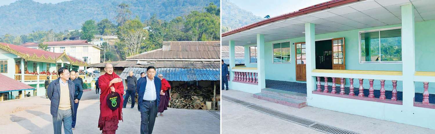 ၎င်းနောက် နိုင်ငံတော်စီမံအုပ်ချုပ်ရေးကောင်စီဥက္ကဋ္ဌ နိုင်ငံတော်ဝန်ကြီးချုပ်သည် ထေရဝါဒဗုဒ္ဓသာသနာပြုသီလရှင်ကျောင်းဝန်းအတွင်းနှင့် ဆွမ်းစားဆောင်တို့အား လှည့်လည်ကြည့်ရှု၍ လိုအပ်သည်များ ထောက်ပံ့လှူဒါန်းပေးခဲ့ကြောင်းနှင့် ရေရှည် တည်တံ့ခိုင်မြဲရေးအတွက် လိုအပ်သည့်ထိန်းသိမ်းမှုများ ဆောင်ရွက်ပေးရန် တာဝန်ရှိသူများအား မှာကြားခဲ့ကြောင်း သတင်းရရှိသည်။