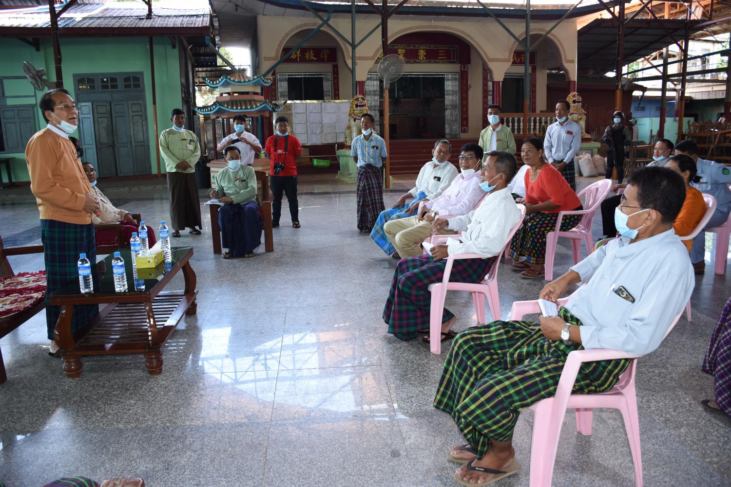 ယင်းနောက် ကချင်စုရပ်ကွက်၊ ဆီမားဘုံကျောင်း၌ ရပ်မိ/ရပ်ဖများနှင့် တွေ့ဆုံပြီး ရပ်ကွက်အတွင်းရှိ အဓိကလမ်းအပါအဝင် လမ်းသွယ်များ အဆင့်မြှင့်တင်ဆောင်ရွက်ပေးနိုင်ရေး၊ ရေကျော်သည့် နေရာများတွင် ရေတားပေးနိုင်ရေး၊ အ.ထ.က(၁၇) ကျောင်းဆောင်သစ် ဆောက်လုပ်နိုင်ရေး တင်ပြကြရာ ပြည်နယ်ဝန်ကြီးချုပ်က မိမိတို့အစိုးရအနေဖြင့် ရပ်ကွက်တွင်း လမ်းများ အဆင့်မြှင့်တင် ဆောင်ရွက်ပေးရာတွင် ပြည်သူများဝန်ထုပ်ဝန်ပိုး မဖြစ်စေဘဲ ဘဏ္ဍငွေရရှိမှုအပေါ် ခွဲဝေလျာထားပြီး ဖြည့်ဆည်းဆောင်ရွက်ပေးလျက်ရှိကြောင်း ပြောကြားပြီး ဌာနဆိုင်ရာတာဝန်ရှိသူများနှင့် ရပ်ကွက်တွင်း အဓိကလမ်းမအပါအဝင် လမ်းသွယ်များကို ကတ္တရာလမ်း ခင်းကျင်းပေးနိုင်ရေး မြေပြင်အခြေအနေ ကွင်းဆင်းတိုင်းတာ စစ်ဆေး၍ ဖြည့်ဆည်းဆောင်ရွက်ပေးနိုင်ရေးကိစ္စများကို ညှိနှိုင်းဆောင်ရွက်ပေးခဲ့ကြောင်းသိရသည်။