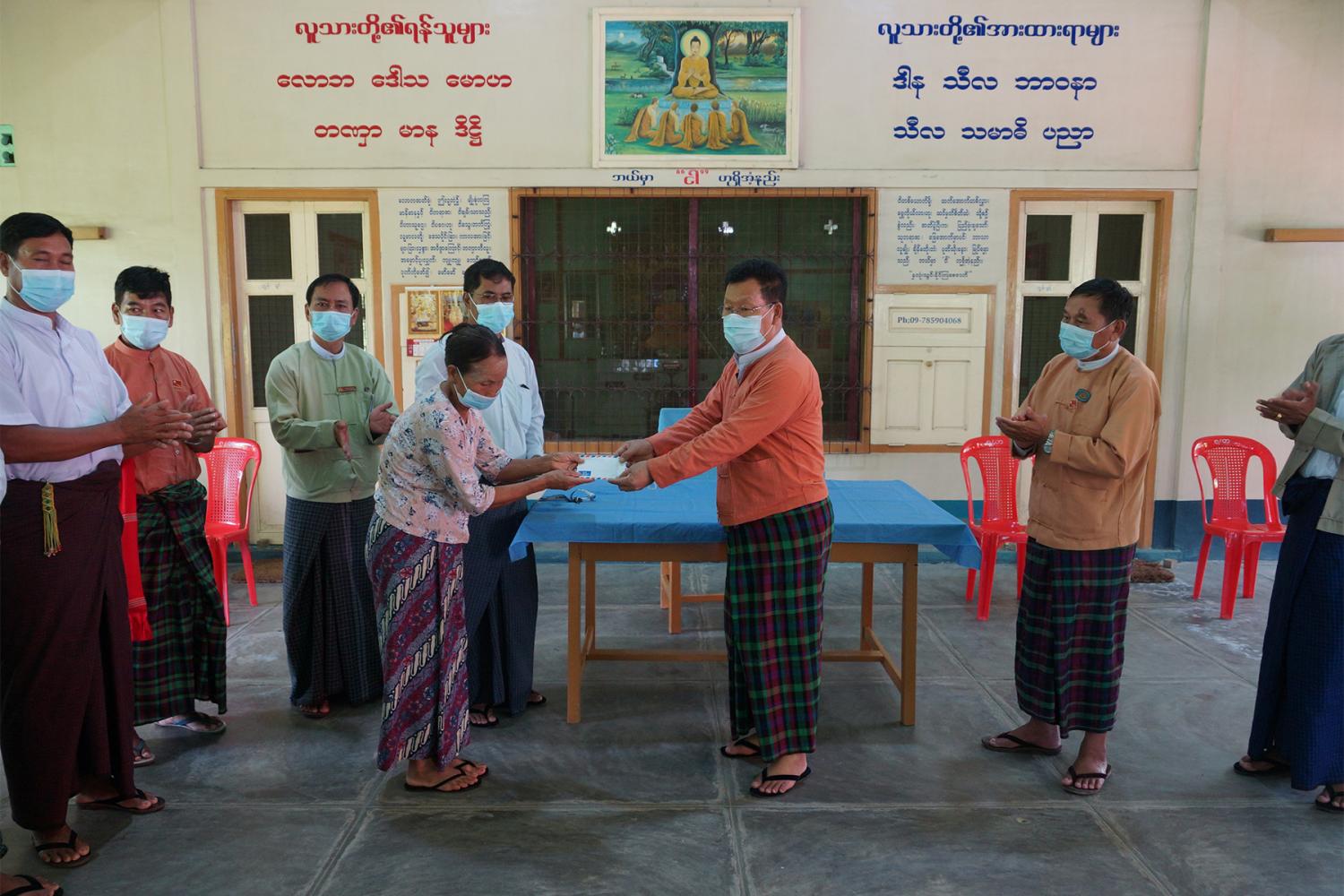 ကိုဗစ်-၁၉ ရောဂါဖြစ်ပွားနေစဉ် ကာလအတွင်း နိုင်ငံတော်အစိုးရအနေဖြင့် ပုံမှန်ဝင်ငွေမရှိသော အခြေခံလူတန်းစား အိမ်ထောင်စုများအတွက် ထောက်ပံ့မှုများပေးလျက်ရှိရာ ကချင်ပြည်နယ်၊ မိုးညှင်းခရိုင်၊ မိုးညှင်းမြို့နယ်အတွင်းရှိ အိမ်ထောင်စုပေါင်း ၉၄၇၄ စုအတွက် ထောက်ပံ့ငွေကျပ် ၁၈၉၄၈၀၀၀၀ကို တတိယအကြိမ်အဖြစ် ထောက်ပံ့ပေးအပ်ခြင်းကို ယနေ့ မွန်းလွဲ ၁ နာရီတွင် သက်ဆိုင်ရာ ရပ်ကွက်/ကျေးရွာအုပ်စုအုပ်ချုပ်ရေးမှူးရုံးများတွင် ထောက်ပံ့ပေးအပ်ခဲ့ကြသည်။
