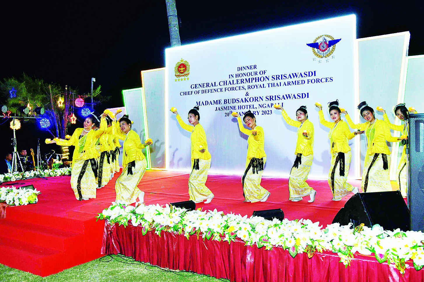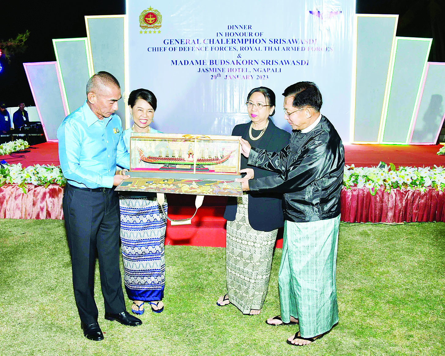 ထိုင်းဘုရင့်တပ်မတော်ကာကွယ်ရေးဦးစီးချုပ်နှင့် ဇနီး ဦးဆောင်သည့် ကိုယ်စားလှယ်အဖွဲ့အား နိုင်ငံတော်စီမံအုပ်ချုပ်ရေးကောင်စီဥက္ကဋ္ဌ တပ်မတော်ကာကွယ်ရေးဦးစီးချုပ် ဗိုလ်ချုပ်မှူးကြီး မင်းအောင်လှိုင်နှင့် ဇနီးတို့က ဂုဏ်ပြုညစာဖြင့် တည်ခင်းဧည့်ခံ