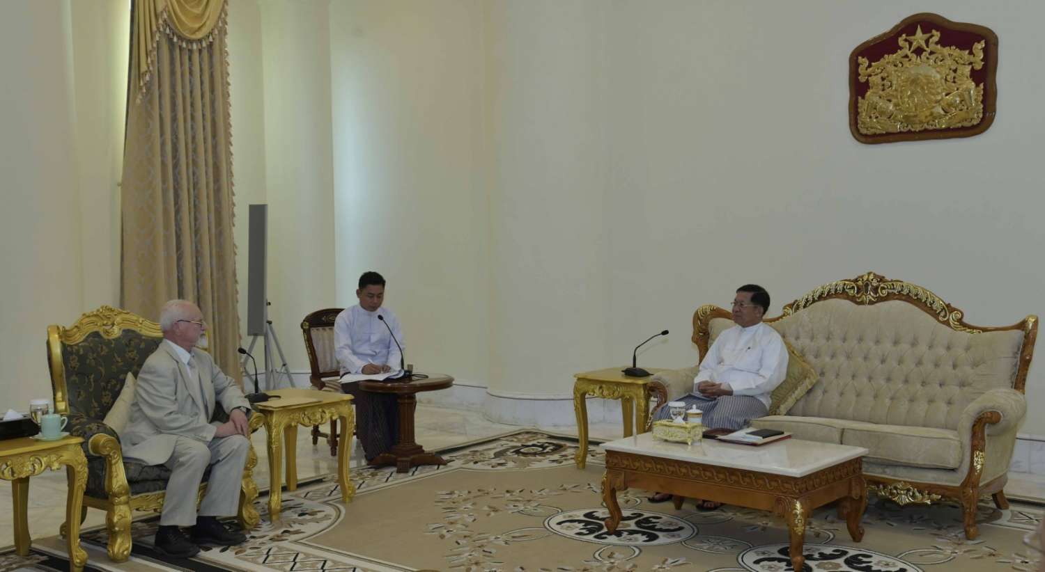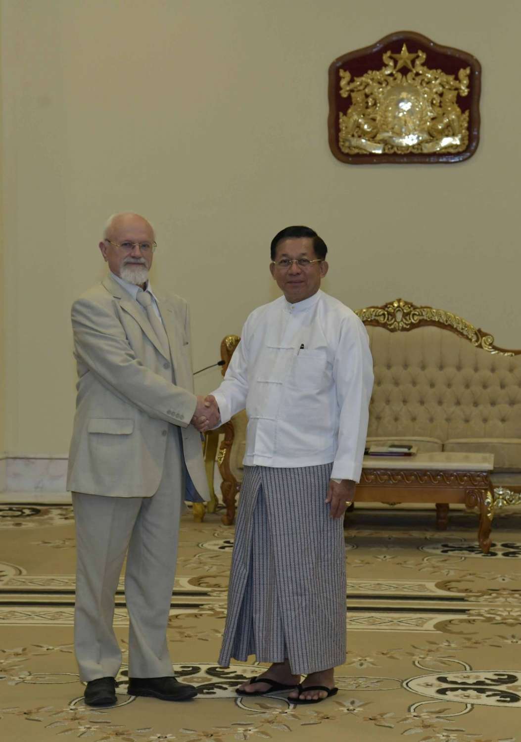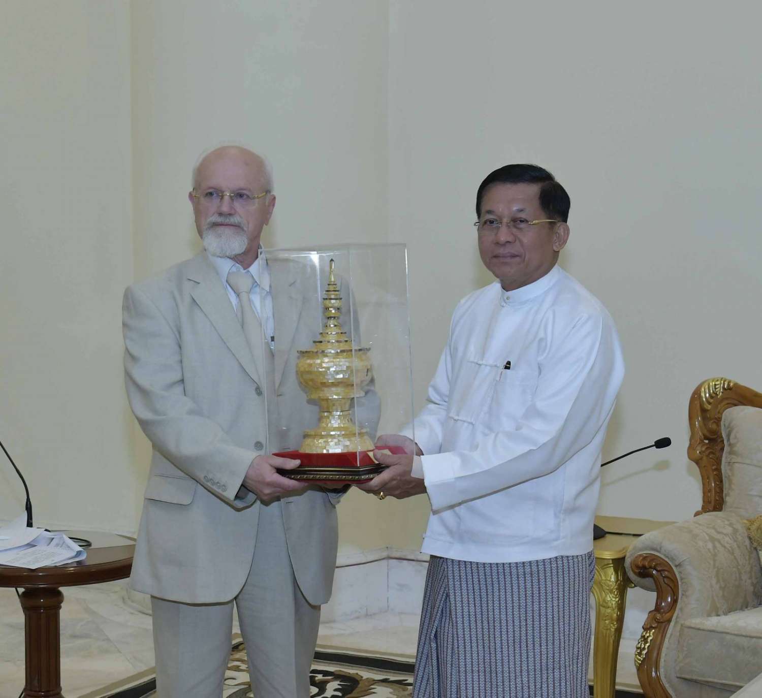 နိုင်ငံတော်စီမံအုပ်ချုပ်ရေးကောင်စီဥက္ကဋ္ဌ နိုင်ငံတော်ဝန်ကြီးချုပ် ဗိုလ်ချုပ်မှူးကြီး မင်းအောင်လှိုင်ထံ ရုရှား-မြန်မာ ချစ်ကြည်ရေးနှင့် ပူးပေါင်းဆောင်ရွက်ရေးအသင်း ဒုတိယဥက္ကဋ္ဌ Mr. Anatoly Bulochnikov ဦးဆောင်သော ကိုယ်စားလှယ်အဖွဲ့က ယနေ့မွန်းလွဲပိုင်းတွင် နေပြည်တော်ရှိ နိုင်ငံတော်စီမံအုပ်ချုပ်ရေးကောင်စီဥက္ကဋ္ဌရုံး၊ ဧည့်ခန်းမ၌ လာရောက်ဂါရဝပြု တွေ့ဆုံသည်။