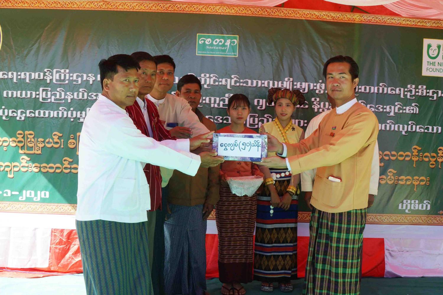 ယင်းနောက် ကျောင်းဆောင်သစ်အား ပညာရေးဝန်ကြီးဌာနသို့ လွှဲပြောင်းပေးအပ်ပြီး နိပွန် ဖောင်ဒေးရှင်း (စေတနာ)အဖွဲ့မှ ဒေသဖွံ့ဖြိုးရေး ရန်ပုံငွေကျပ် (၇၄) သိန်းကို ကျေးရွာပြည်သူလူထု များထံ လွှဲပြောင်း ပေးအပ်သည်။