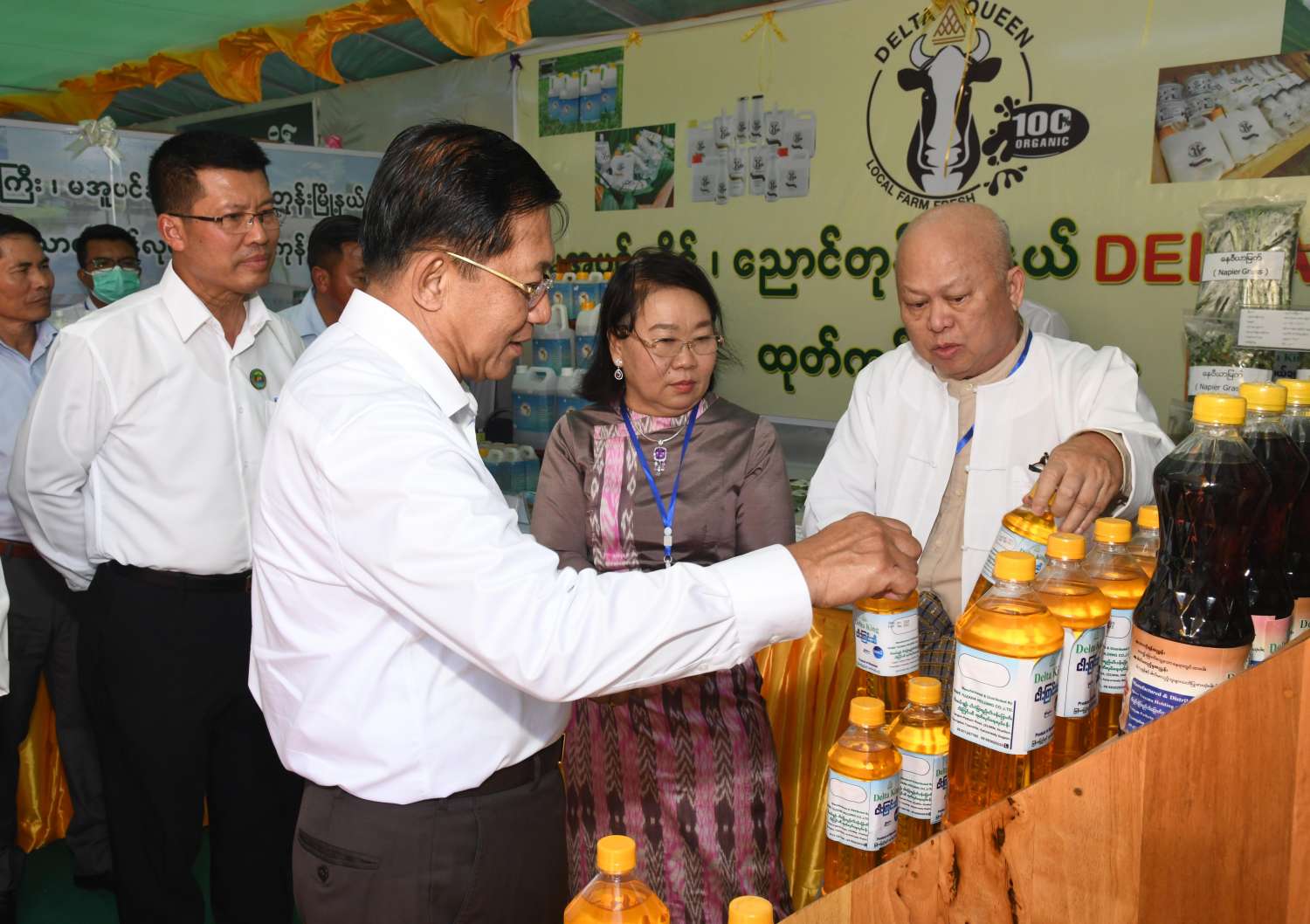 ပြည်တွင်းစီးပွားရေးလုပ်ငန်းများ ဆောင်ရွက်ရာတွင် ပြည်တွင်းမှထွက်ရှိသည့် ကုန်ကြမ်းများကို အဓိကထားဆောင်ရွက်ရမည်ဖြစ်ကြောင်း၊ စိုက်ပျိုးရေးနှင့် မွေးမြူရေးလုပ်ငန်းများမှထွက်ရှိသည့် ကုန်ကြမ်းများမှ တန်ဖိုးမြှင့်ထုတ်ကုန်များကို ထုတ်လုပ်နိုင်ရန်လိုအပ်ကြောင်း၊ ဧရာဝတီတိုင်းဒေသကြီးအတွင်း ငါးမွေးမြူရေးလုပ်ငန်းများကို အောင်မြင်စွာ ဆောင်ရွက်နိုင်မည့် အရင်းအမြစ်များကို ပိုင်ဆိုင်ထားပြီးဖြစ်ကြောင်း၊ နိုင်ငံအတွက် အသား၊ ငါး လိုအပ်ချက်များစွာရှိပြီး လူအများစားသုံးနိုင်သော သင့်တော်သည့် ဈေးနှုန်းဖြင့်ရောင်းချနိုင်သည့် ငါးမျိုးများမွေးမြူနိုင်ရန် လိုကြောင်း၊ အလားတူ ဆန်စပါးစိုက်ပျိုးမှုတွင်လည်း တစ်ဧကချင်းအထွက်နှုန်း တိုးတက်ကောင်းမွန်အောင် ဆောင်ရွက်ကြရန်လိုသကဲ့သို့ အရည်အသွေးကောင်းမွန်သည့် စပါးမျိုးများ စိုက်ပျိုးကြရန်လိုကြောင်း၊ စိုက်ပျိုးရေးလုပ်ငန်းများကို ဆောင်ရွက်ရာတွင် မျိုးကောင်းရန်၊ မြေကောင်းရန်၊ ရေလုံလောက်စွာရရှိရန်၊ နည်းစနစ်တကျစိုက်ပျိုးရန် စသည့်အချက်များ လိုအပ်ကြောင်း၊ ဒေသတွင်းကုန်ကြမ်းများ ပိုမိုရရှိအောင် ဆောင်ရွက်ကြရန်လိုကြောင်း၊ ဆီထွက်သီးနှံများကိုလည်း အထွက်နှုန်းတိုးတက်အောင်ဆောင်ရွက်ကြရန် လိုကြောင်း။