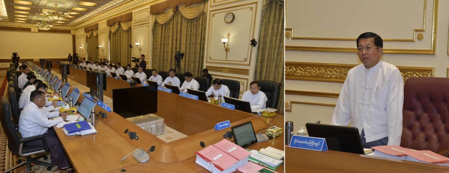 ပြည်ထောင်စုအစိုးရအဖွဲ့အစည်းအဝေး အမှတ်စဉ်(၂/၂၀၂၃)ကို ယနေ့မွန်းလွဲပိုင်းတွင် နေပြည်တော်ရှိ နိုင်ငံတော်စီမံအုပ်ချုပ်ရေးကောင်စီဥက္ကဋ္ဌရုံး အစည်းအဝေးခန်းမ၌ကျင်းပရာ နိုင်ငံတော်စီမံအုပ်ချုပ်ရေးကောင်စီဥက္ကဋ္ဌ နိုင်ငံတော်ဝန်ကြီးချုပ် ဗိုလ်ချုပ်မှူးကြီးမင်းအောင်လှိုင် တက်ရောက်အမှာစကားပြောကြားသည်။