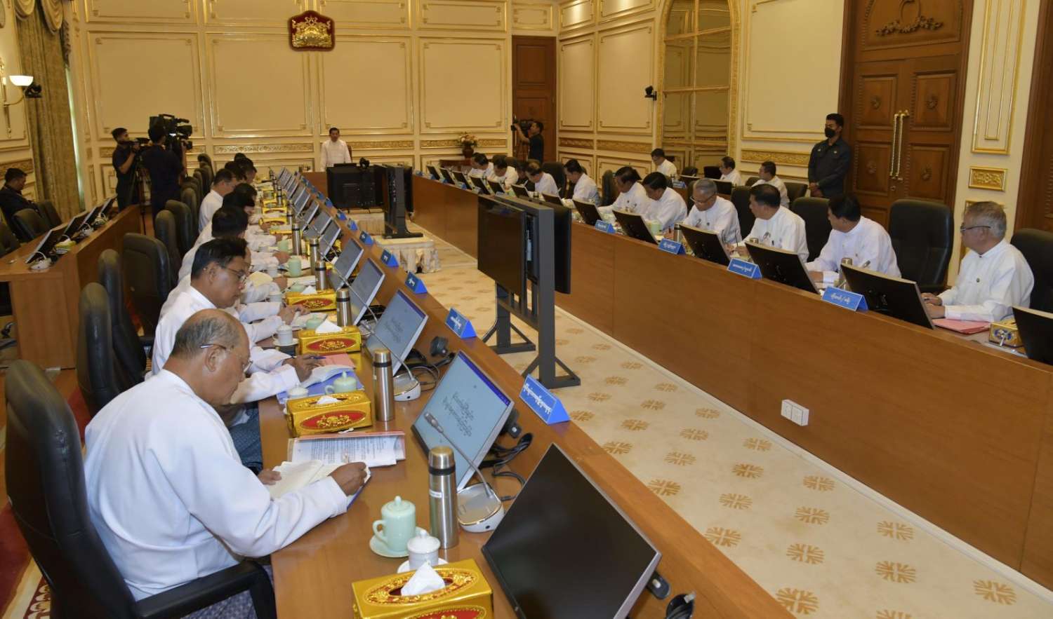အစည်းအဝေးတွင် ပြည်ထောင်စုဝန်ကြီးများက သက်ဆိုင်ရာကဏ္ဍအလိုက် ရှင်းလင်းတင်ပြကြသည်။