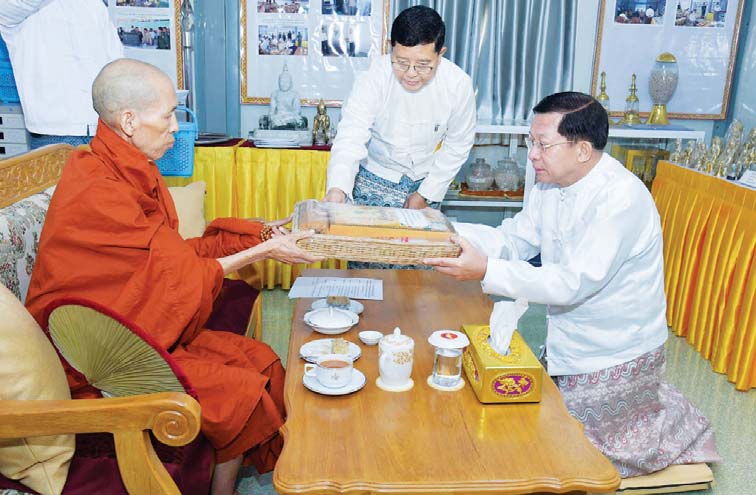 ဦးစွာ ဦးဆောင်ဘုရားဒါယကာ နိုင်ငံတော်စီမံအုပ်ချုပ်ရေးကောင်စီဥက္ကဋ္ဌ နိုင်ငံတော် ဝန်ကြီးချုပ်သည် မာရဝိဇယဗုဒ္ဓဥယျာဉ်တော်အတွင်းရှိ ရှင်းလင်းဆောင်၌ ပါဠိဆရာတော်ကြီးအမှူးပြုသည့် သံဃာတော်များအား ဖူးမြော်ကြည်ညိုပြီး လှူဖွယ်ပစ္စည်းများနှင့် နဝကမ္မအလှူငွေများ ဆက်ကပ်လှူဒါန်းသည်။ ထို့နောက် ပါဠိ ဆရာတော်ကြီးအမှူးပြုသည့် သံဃာတော်များ၊ ဦးဆောင်ဘုရားဒါယကာ နိုင်ငံတော်စီမံအုပ်ချုပ်ရေးကောင်စီဥက္ကဋ္ဌ နိုင်ငံတော်ဝန်ကြီးချုပ်နှင့် ဘုရားဒါယကာများသည် ရတနာရွှေသေတ္တာတော်များ အတွင်းထည့်သွင်းထားသည့် နိုင်ငံတစ်ဝန်းလုံးရှိ (၇) ရက် သားသမီး ဘုရားဒါယကာဒါယိကာမများ၊ စေတနာရှင်အလှူရှင်များ စုပေါင်းလှူဒါန်းထားသည့် အဖိုးတန်ရတနာရွှေငွေကျောက် သံပတ္တမြားများ၊ နိုင်ငံတကာမှ ငွေဒင်္ဂါး ပြားများနှင့်ဌာပနာ ပစ္စည်းများကိုကြည့်ရှု၍ ဦးဆောင်ဘုရား ဒါယကာ နိုင်ငံတော်စီမံအုပ်ချုပ်ရေးကောင်စီဥက္ကဋ္ဌ နိုင်ငံတော်ဝန်ကြီးချုပ်က ဆရာတော်ကြီးများထံ တင်ပြလျှောက်ထားပြီး ကြည်ညိုသဒ္ဒါပွားများကြသည်။