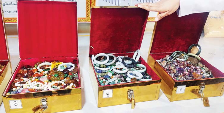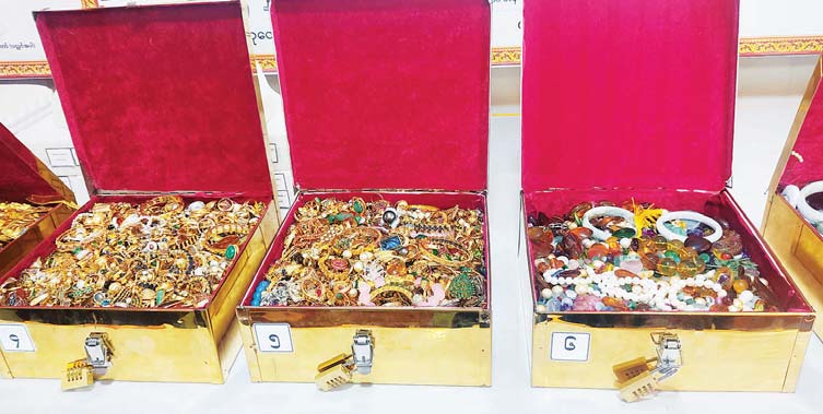 ထိုကဲ့သို့ နိုင်ငံတစ်ဝန်းလုံးရှိ မိဘပြည်သူများ ဝမ်းပန်းတသာ ဆက်သွယ်လှူဒါန်းခဲ့ကြသည့် ရွှေထည် ၁၃၆၀ ကျပ်သား ၅ ဒသမ ၄ ရွေး၊ ကျောက်မျက်ရတနာပါ ရွှေထည်ပစ္စည်း ၁၆၈၄ ကျပ်သား ၁၅ ပဲ ၁ ဒသမ ၆ ရွေး၊ ကျောက်မျက်ရတနာပါ ငွေထည်ပစ္စည်း ၁၂၆ ပဲ ၅ ဒသမ ၁ ရွေး၊ ကျောက်မျိုးစုံ၊ ပုလဲမျိုးစုံ အပါအဝင် နိုင်ငံတကာမှ ငွေဒင်္ဂါးပြားများ၊ အဖိုးတန်ရွှေငွေ ကျောက်သံပတ္တမြားများကို ယနေ့တွင် မာရဝိဇယဗုဒ္ဓရုပ်ပွားတော်မြတ်ကြီး၏ ရတနာ ပလ္လင်တော်ထက် အလယ်ဗဟိုဌာနများတွင် ဌာပနာသွင်းလှူပူဇော်နိုင်ခဲ့ကြောင်းနှင့် ဘုရားကြီးဘက်စုံအလှူငွေအဖြစ် ငွေကျပ် သိန်းပေါင်း ၈၁၀၀ ကျော်ကိုလည်း လက်ခံရရှိခဲ့သည်။