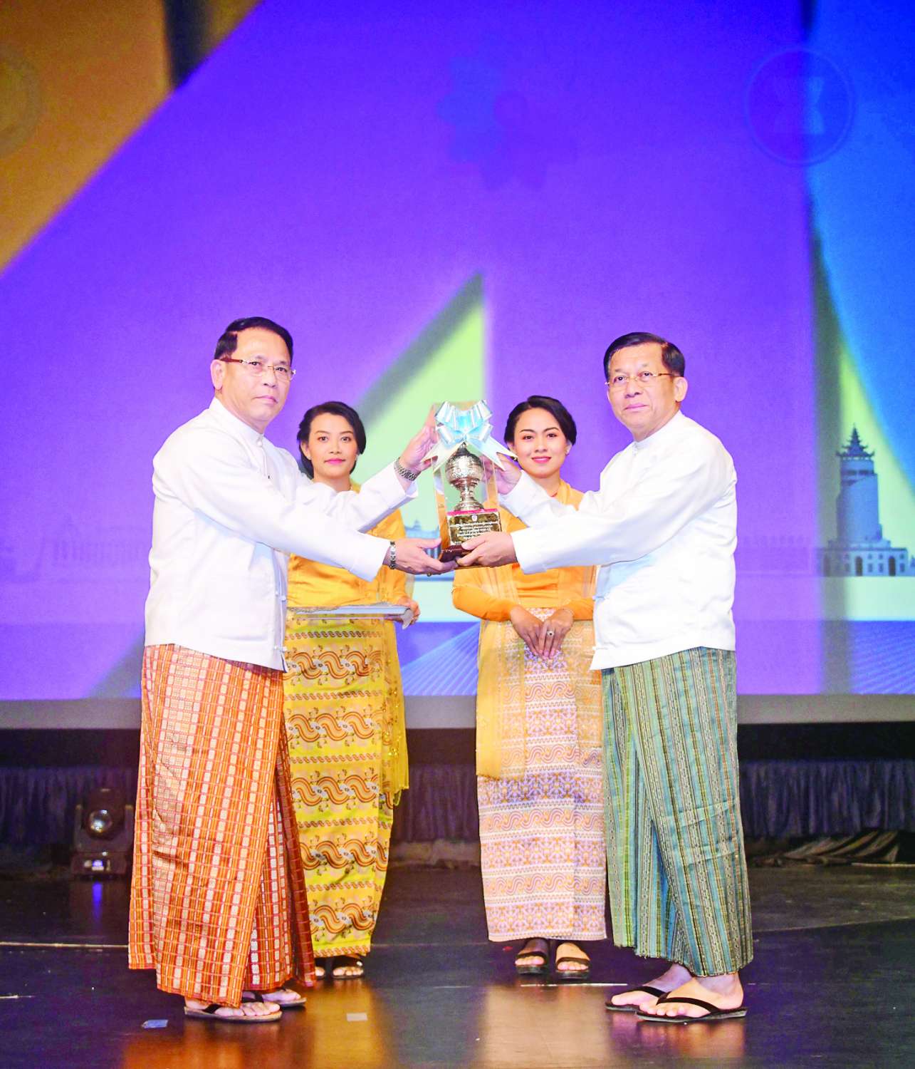 ထို့နောက် နိုင်ငံတော်စီမံအုပ်ချုပ်ရေးကောင်စီဥက္ကဋ္ဌ နိုင်ငံတော်ဝန်ကြီးချုပ်က 10th ASEAN Quiz (Regional Level) ပြိုင်ပွဲအား နိုင်ငံတော်အဆင့်နှင့်အညီ ခမ်းနားထည်ဝါစွာ စီစဉ်ကျင်းပနိုင်မှုနှင့် (၇၅)နှစ်မြောက် စိန်ရတုလွတ်လပ်ရေးနေ့အထိမ်းအမှတ် “တူယှဉ် နွှဲပျော်ဂီတပွဲတော်” Season-2 အား အောင်မြင်စွာ စီစဉ်တင်ဆက်နိုင်မှုတို့အတွက် မြန်မာ့အသံနှင့်ရုပ်မြင်သံကြားမှ ဝန်ထမ်းများအတွက် ဂုဏ်ပြုဆုနှင့် မြန်မာ့အသံနှင့် ရုပ်မြင်သံကြားအတွက် ဂုဏ်ပြုချီးမြှင့်ငွေ ၇၇ သိန်းကို ချီးမြှင့်ပေးအပ်ရာ ပြန်ကြားရေးဝန်ကြီး ဌာန ပြည်ထောင်စုဝန်ကြီးက လက်ခံရယူသည်။