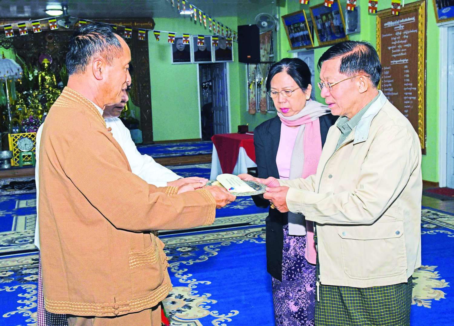 ဆက်လက်ပြီး နိုင်ငံတော်စီမံအုပ်ချုပ်ရေးကောင်စီဥက္ကဋ္ဌ နိုင်ငံတော်ဝန်ကြီးချုပ်နှင့်ဇနီးတို့က စေတီတော်ကြီးအတွက် ဘက်စုံအလှူငွေများကိုပေးအပ်လှူဒါန်းရာ ဂေါပကအဖွဲ့ အလုပ်အမှုဆောင်အဖွဲ့ဥက္ကဋ္ဌနှင့် အဖွဲ့ဝင်များက လက်ခံရယူခဲ့ကြကြောင်း သတင်းရရှိသည်။