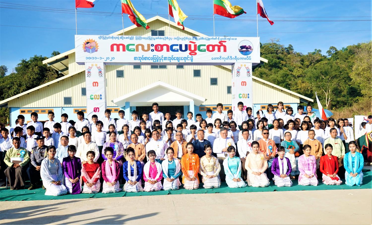 ကလေးစာပေပွဲတော်၊ စာအုပ်ပြပွဲနှင့် စာအုပ်ဈေးရောင်းပွဲကို ရခိုင်ပြည်နယ်ဝန်ကြီးချုပ် ဦးညီပု ၊ ပြန်ကြားရေးဝန်ကြီးဌာန ဒုတိယဝန်ကြီး ဦးအောင်လှထွန်း၊ ပြည်နယ်စည်ပင်သာယာရေးဝန်ကြီး ဦးဝင်းမြင့်၊ ပြည်နယ် လူမှုရေးဝန်ကြီး ဒေါက်တာ ချမ်းသာ၊ ပြည်သူ့ လွှတ်တော်ကိုယ်စားလှယ်ဒေါ်နီနီမေမြင့် ၊ တောင်ကုတ်ဒီဂရီ ကောလိပ်၊ ကျောင်းအုပ်ကြီး ဒေါက်တာသန်းထွဋ်လွင်နှင့် မြို့မိမြို့ဖ ဦးကျောက်တောင်တို့က ဖဲကြိုးဖြတ် ဖွင့်လှစ်ပေးကြပြီး ကျောင်းသားကျောင်းသူလေးများနှင့်အတူ မှတ်တမ်းတင် ဓါတ်ပုံရိုက်ကြသည်။