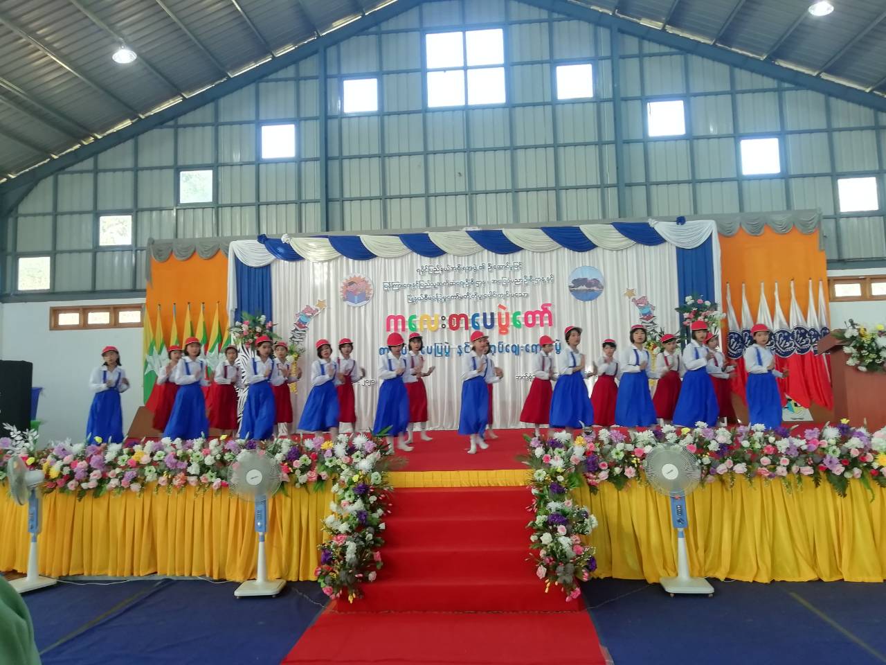 ထို့နောက် အခမ်းအနားဒုတိယပိုင်းကို ကျင်းပရာ အမှတ်(၁)အခြေခံ ပညာ အထက်တန်းကျောင်းမှ ကျောင်းသားကျောင်းသူလေးများက Theme Song ကို သီဆိုသည်။