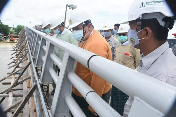 ထို့နောက် တိုင်းဒေသကြီး ဝန်ကြီးချုပ်နှင့် အဖွဲ့တို့သည် ရွှေလောင်းတံတား အဆင့်မြှင့်တင် တည်ဆောက်မှု အခြေနေများကို သွားရောက် ကြည့်ရှူစစ်ဆေးခဲ့ရာ တာဝန်ရှိသူများက တံတား တည်ဆောက်ရေး လုပ်ငန်းဆောင်ရွက်ပြီးစီးမှု အခြေအနေများ နှင့်ပတ်သက်၍ အသေးစိပ်ရှင်းလင်း တင်ပြခဲ့ပြီး တိုင်းဒေသကြီးဝန်ကြီးချုပ်နှင့် ဝန်ကြီးများက လိုအပ်သည်များကို လမ်းညွှန်မှာကြားခဲ့သည်။