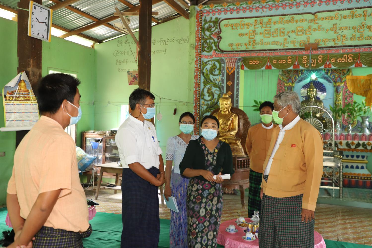 စစ်ကိုင်းတိုင်းဒေသကြီးအစိုးရအဖွဲ့ ဝန်ကြီးချုပ်ဒေါက်တာမြင့်နိုင်သည် ရွေဘိုခရိုင်စီမံခန့်ခွဲမှုကော်မတီဥက္ကဋ္ဌ ဦးကိုကိုအောင်နှင့် မြို့နယ် စီမံခန့်ခွဲမှု ကော်မတီ ဥက္ကဋ္ဌ ဦးသောင်းဟိန်းတို့နှင်အတူ ယမန်နေ့ မွန်းတည့်(၉)နာရီက ရွှေဘိုမြို့နယ်အတွင်းရှိ သံပရာခြံကျေးရွာနှင့် ထူးကြီးကျေးရွာတို့မှ ကျောင်းထိုင် ဆရာတော်များအားဖူးမြှော်ကြည်ညို၍ လှူဖွယ်ဝတ္ထုပစ္စည်းများကို ဆက်ကပ်လှူဒါန်းခဲ့ပြီး ပြည်သူလူထုနှင့် ရင်းရင်းနှီးတွေ့ဆုံ နှုတ်ဆက်ပြီး သွေးလွန်တုပ်ကွေးရောဂါကာကွယ်ရန် တစ်ရွာလုံးကျွတ် ခြင်ဆေးမှုတ်ဖျန်းပေးရေးအား အလေးထားဆောင်ရွက်စေရေးအတွက် ထောက်ပံ့ငွေများကို တာဝန်ရှိသူထံ သို့ပေးအပ်ခဲ့သည်။
