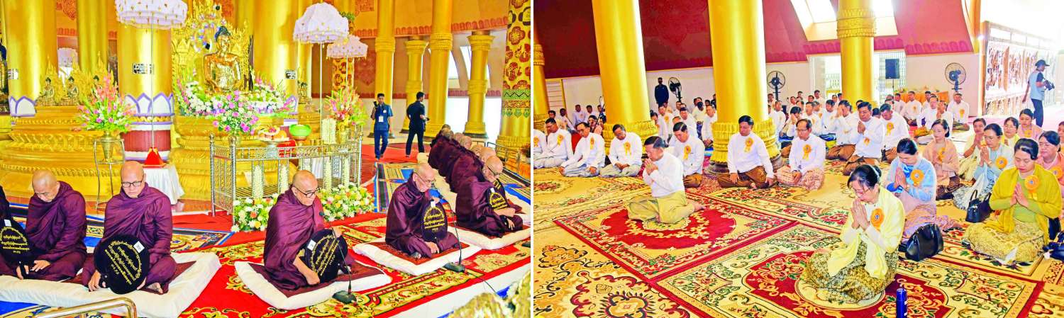 ဦးစွာ နိုင်ငံတော်စီမံအုပ်ချုပ်ရေးကောင်စီဥက္ကဋ္ဌ နိုင်ငံတော်ဝန်ကြီးချုပ်နှင့် အဖွဲ့ဝင်များက စေတီတော်လိုဏ်အတွင်းရှိ ဗုဒ္ဓရုပ်ပွားတော်မြတ်အား ဖူးမြော်ကြည်ညို၍ မြသပိတ်ဆွမ်းတော်နှင့် ပန်း၊ ရေချမ်း၊ ဆီမီး တို့ကို ဆက်ကပ်လှူဒါန်းသည်။