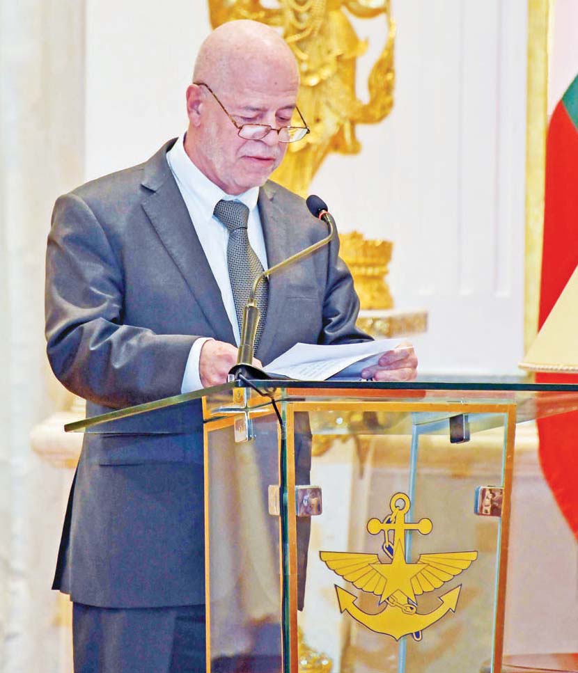 ယင်းနောက် ရုရှားဖက်ဒရေးရှင်းနိုင်ငံ၊ ကာကွယ်ရေးဝန်ကြီးဌာန၊ ဒုတိယဝန်ကြီးက စွမ်းဆောင်မှုဆိုင်ရာ ဘွဲ့တံဆိပ်လက်ခံရရှိခြင်းအတွက် ကျေးဇူးတင်စကားပြောကြားရာတွင် ယခုကဲ့သို့ ပြည်ထောင်စုသမ္မတမြန်မာနိုင်ငံတော်မှချီးမြှင့်သည့် စွမ်းဆောင်မှုဆိုင်ရာ ဂုဏ်ထူးဆောင်ဘွဲ့ကို ရရှိခဲ့သည့်အတွက် များစွာဂုဏ်ယူဝမ်းမြောက်ပါကြောင်းနှင့် ကျေးဇူးတင်ရှိပါကြောင်း၊ မိမိတစ်ဦးတည်း၏ စွမ်းဆောင်မှုကြောင့် ယခုကဲ့သို့ ဆုချီးမြှင့်ခံရခြင်းမဟုတ်ဘဲ အားလုံး၏ပူးပေါင်းဆောင်ရွက်မှုကြောင့် ရရှိခဲ့ခြင်းဖြစ်သည်ဟု ခံယူထားပါကြောင်း၊ မိမိအနေဖြင့် ရရှိပြီးဖြစ်သည့် နှစ်နိုင်ငံပူးပေါင်းဆောင်ရွက်မှုများနှင့် ဆက်ဆံမှုများကို ပိုမိုတိုးမြှင့်ခိုင်မာစေရေး ဆက်လက်ကြိုးပမ်း ဆောင်ရွက်သွားမည်ဖြစ်ပါကြောင်းနှင့် ယခုချီးမြှင့်ခံရသည့် စွမ်းဆောင်မှုဆိုင်ရာ ဂုဏ်ထူးဆောင်ဘွဲ့တံဆိပ်နှင့် ထိုက်တန်သည့် ကြိုးစားဆောင်ရွက်မှုများကို ဆက်လက်ဆောင်ရွက်သွားမည်ဖြစ်ပါကြောင်း၊ မိမိတို့နှစ်နိုင်ငံ၏ သံတမန်ဆက်ဆံမှုသည် ၇၅ နှစ်ပြည့်မြောက်ခဲ့ပြီဖြစ်ကြောင်း၊ မကြာမီကျရောက်တော့မည့် မြန်မာနိုင်ငံ၏ နှစ်သစ်ကူး အခါသမယမှစ၍ ပြည်ထောင်စုသမ္မတမြန်မာနိုင်ငံတော်ကြီးသည် အဆွေတော် နိုင်ငံတော်စီမံအုပ်ချုပ်ရေးကောင်စီဥက္ကဋ္ဌ နိုင်ငံတော်ဝန်ကြီးချုပ်၏ ဦးဆောင်မှုအောက်တွင် အောင်မြင်မှုများ၊ ဖွံ့ဖြိုးတိုးတက်မှုများစွာကို ဆက်လက်ရရှိပါစေရန် ဆုမွန်ကောင်းတောင်းပါကြောင်းဖြင့် ပြောကြားသည်။