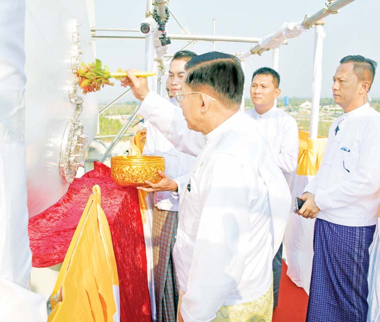 ယင်းနောက် “ဗုဒ္ဓသာသနံ စိရံ တိဋ္ဌတု” သုံးကြိမ်ရွတ်ဆိုဆုတောင်း၍ အခမ်းအနားကိုရုပ်သိမ်းပြီး နိုင်ငံတော်စီမံအုပ်ချုပ်ရေးကောင်စီဥက္ကဋ္ဌ နိုင်ငံတော်ဝန်ကြီးချုပ်နှင့် ဇနီးတို့က အခမ်းအနားအောင်မြင်ခြင်းအထိမ်းအမှတ် ရတနာရွှေမိုးငွေမိုးများ ရွာသွန်းဖြိုးကြသည်။