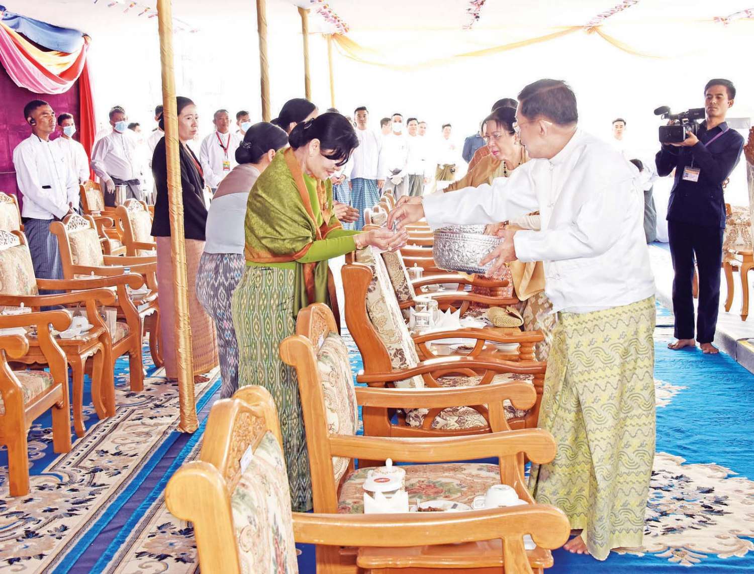 ယင်းနောက် နိုင်ငံတော်စီမံအုပ်ချုပ်ရေးကောင်စီဥက္ကဋ္ဌ နိုင်ငံတော်ဝန်ကြီးချုပ်နှင့် ဇနီးအမှူးပြုသည့် ဧည့်ပရိသတ်များက ရတနတ္တယပူဇာ ဂါထာတော်နှင့် သဗ္ဗသင်္ဂါဟက မေတ္တာပို့ လင်္ကာနှစ်ပိုဒ်ကို သံပြိုင်ညီညာသုံးကြိမ် ရွတ်ဆိုပူဇော်ကြသည်။