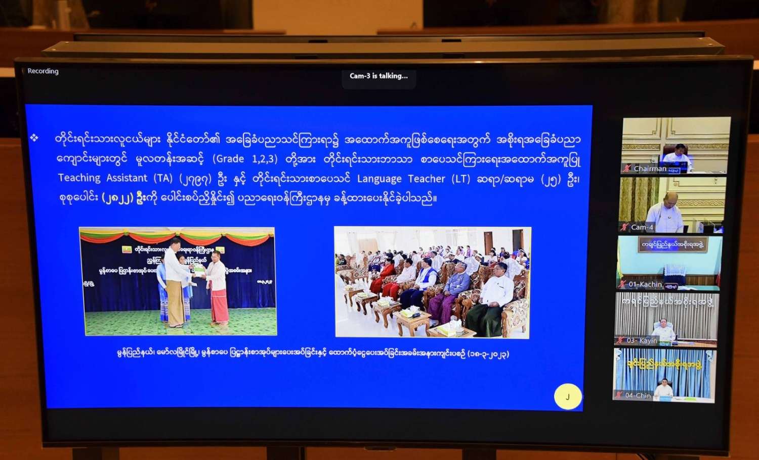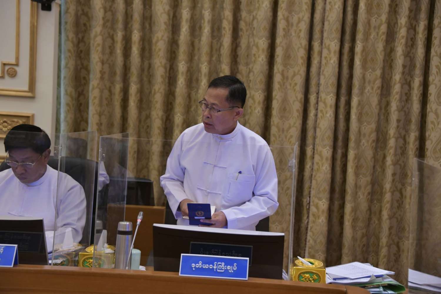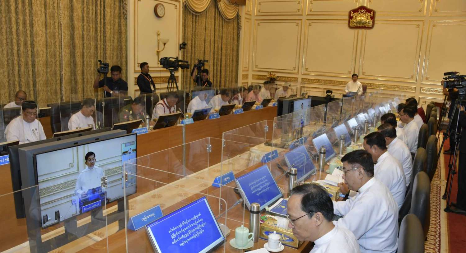 အစည်းအဝေးသို့နယ်စပ်ဒေသနှင့် တိုင်းရင်းသားလူမျိုးများ၏ ဖွံ့ဖြိုးတိုးတက်မှုအကောင်အထည်ဖော်ရေးဗဟိုကော်မတီ ဒုတိယဥက္ကဋ္ဌ နိုင်ငံတော်စီမံအုပ်ချုပ်ရေးကောင်စီဒုတိယဥက္ကဋ္ဌ ဒုတိယဝန်ကြီးချုပ် ဒုတိယဗိုလ်ချုပ်မှူးကြီးစိုးဝင်း၊ နိုင်ငံတော်စီမံအုပ်ချုပ်ရေးကောင်စီဝင်နှင့် ဒုတိယဝန်ကြီးချုပ်များဖြစ်ကြသည့် ပြည်ထောင်စုဝန်ကြီး ဗိုလ်ချုပ်ကြီးတင်အောင်စန်းနှင့် ပြည်ထောင်စုဝန်ကြီး ဒုတိယဗိုလ်ချုပ်ကြီးစိုးထွဋ်၊ ဒုတိယဝန်ကြီးချုပ်နှင့် ပြည်ထောင်စုဝန်ကြီးဦးဝင်းရှိန်၊ နိုင်ငံတော်စီမံအုပ်ချုပ်ရေးကောင်စီဝင်များဖြစ်ကြသည့် ဒေါ်ဒွဲဘူ၊ ပိုးရယ်အောင်သိန်း၊မန်းငြိမ်းမောင်၊ ဒေါက်တာမှုထန်၊ ဒေါက်တာအောင်ကျော်မင်း၊ ဒေါက်တာကျော်ထွန်း၊ ခွန်စံလွင်၊ ဦးရွှေကြိမ်း၊ ဦးရန်ကျော်၊ ပြည်ထောင်စုဝန်ကြီးများဖြစ်ကြသည့် ဒုတိယဗိုလ်ချုပ်ကြီး ထွန်းထွန်းနောင်၊ ဦးမင်းနောင်၊ ဦးလှမိုး၊ ဦးသောင်းဟန်၊ ဒေါက်တာ ညွန့်ဖေ၊ ဒေါက်တာမျိုးသိန်းကျော်၊ ဒေါက်တာသက်ခိုင်ဝင်း၊ Jeng Pheng နော်တောင်၊ ညှိနှိုင်းကွပ်ကဲရေးမှူး(ကြည်း၊ ရေ၊ လေ) ဗိုလ်ချုပ်ကြီး မောင်မောင်အေး၊ ကာကွယ်ရေးဦးစီးချုပ်ရုံးမှ တပ်မတော်အရာရှိကြီးများ၊ ဒုတိယဝန်ကြီးများနှင့် တာဝန်ရှိသူများ တက်ရောက်ကြပြီး တိုင်းဒေသကြီးနှင့် ပြည်နယ်အစိုးရအဖွဲ့များမှ ဝန်ကြီးချုပ်များက Video Conferencing ဖြင့် တက်ရောက်ကြသည်။