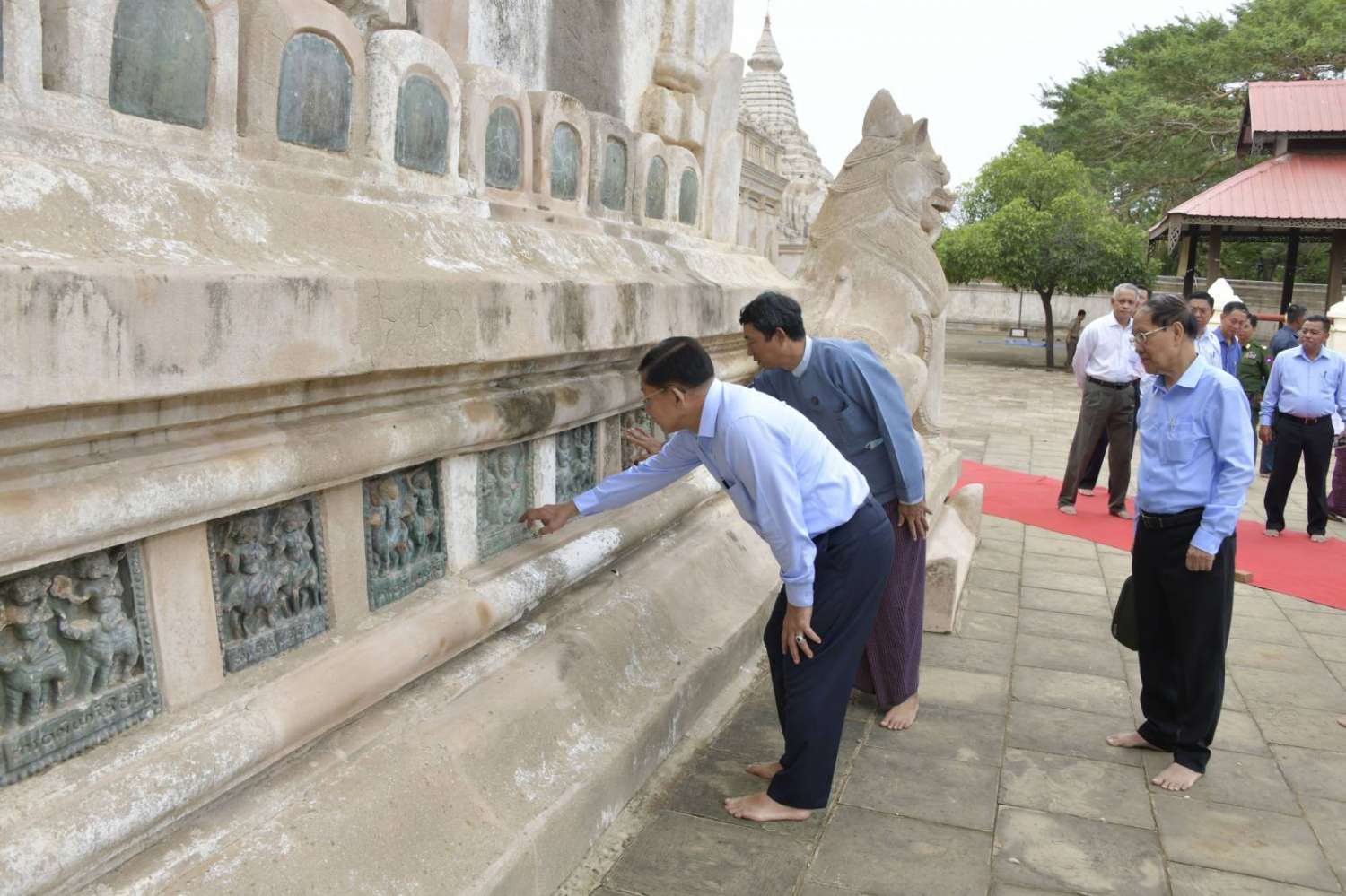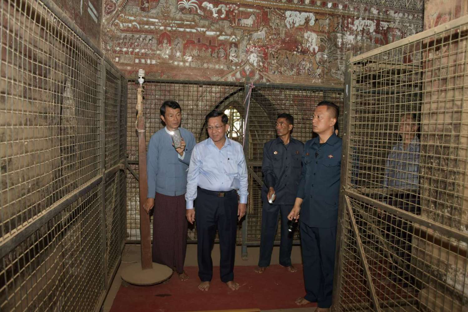 နိုင်ငံတော်စီမံအုပ်ချုပ်ရေးကောင်စီဥက္ကဋ္ဌ နိုင်ငံတော်ဝန်ကြီးချုပ်သည် ပုဂံရှေးဟောင်း ယဉ်ကျေးမှုနယ်မြေရှိ အာနန္ဒာဘုရား၊ ထီးလိုမင်းလို ဘုရားကြီးနှင့် ရွှေစည်းခုံ စေတီတော်မြတ်ကြီးတို့သို့ သွားရောက်၍ သဘာဝဘေးအန္တရာယ်ကျရောက်ခဲ့မှုကြောင့် ရေဝင် ရောက်ခဲ့မှုနှင့် ထိခိုက်ပျက်စီးမှုဖြစ်ပေါ်ခဲ့သည့် အခြေအနေများအား သွားရောက်ကြည့်ရှု စစ်ဆေးပြီး လိုအပ်သည်များ မှာကြားစဉ် ဘက်စုံအလှူငွေများ အသီးသီးပေးအပ်လှူဒါန်းခဲ့ပြီး ဘုရားဖူးလာပြည်သူများအား ရင်းရင်းနှီးနှီး နှုတ်ဆက်ခဲ့သည်။