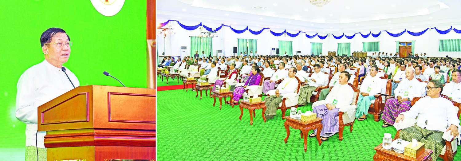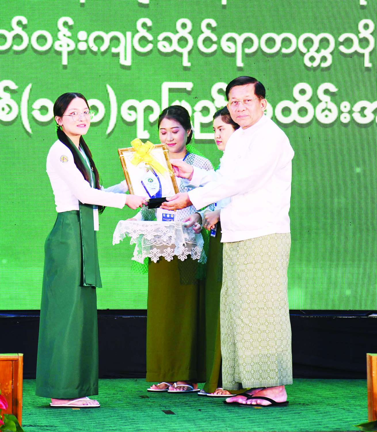 ယင်းနောက် နိုင်ငံတော်စီမံအုပ်ချုပ်ရေးကောင်စီဥက္ကဋ္ဌနိုင်ငံတော်ဝန်ကြီးချုပ်က ဖျော်ဖြေတင်ဆက်ခဲ့သည့်အနုပညာရှင်များနှင့် ကျောင်းသားကျောင်းသူများကို ဂုဏ်ပြုပန်းခြင်းပေးအပ်သည်။