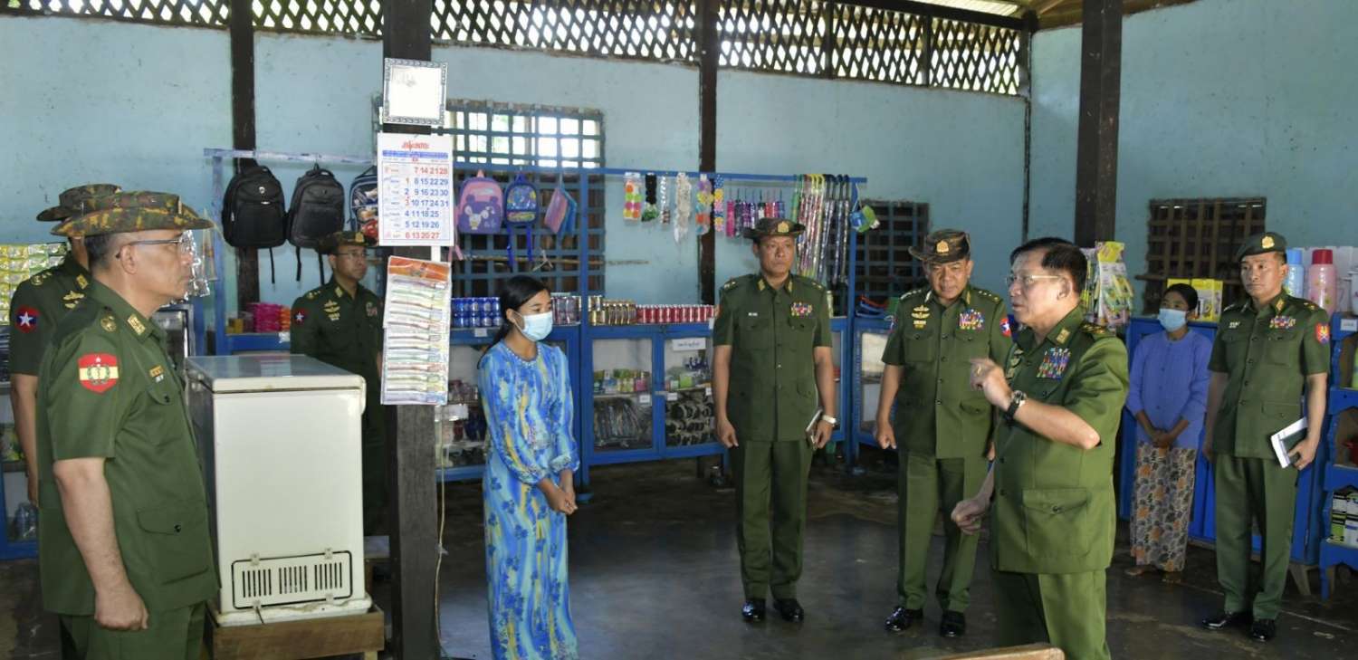 ယင်းနောက် နိုင်ငံတော်စီမံအုပ်ချုပ်ရေးကောင်စီဥက္ကဋ္ဌ တပ်မတော်ကာကွယ်ရေးဦးစီးချုပ်နှင့် အဖွဲ့ဝင်များသည် ကလောတပ်နယ်ရှိ နယ်မြေခံတပ်ရင်းဌာနချုပ်များသို့ သွားရောက်၍ တပ်တွင်းအရောင်းဆိုင်၌ စားသောက်ကုန်ပစ္စည်းများနှင့် လူသုံးကုန်ပစ္စည်းများကို သက်သာသောဈေးနှုန်းများဖြင့် ရောင်းချပေးနေမှုများကို ကြည့်ရှုစစ်ဆေးသည်။ ထို့ပြင် နယ်မြေခံတပ်အတွင်းရှိ နတ်ရေကန်ရေထွက် ရေကန်သဲနုန်း တူးဖော်ခြင်းလုပ်ငန်း ဆောင်ရွက်ရန်ပြင်ဆင်ထားရှိမှုအား ကြည့်ရှုစစ်ဆေးပြီး ရေကန်ပေါင်များ စနစ်တကျရှိစေရေးပြန်လည်ပြုပြင်ရန်၊ မိုးမကျမီသဲနုန်းတူးဖော်ခြင်းအား အပြီးဆောင်ရွက်ရန်နှင့် အခြားလိုအပ်သည်များကို လမ်းညွှန်မှာကြားသည်။