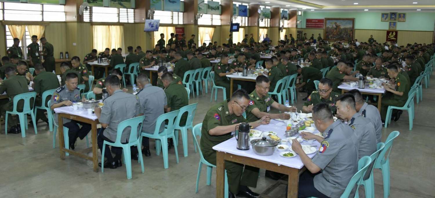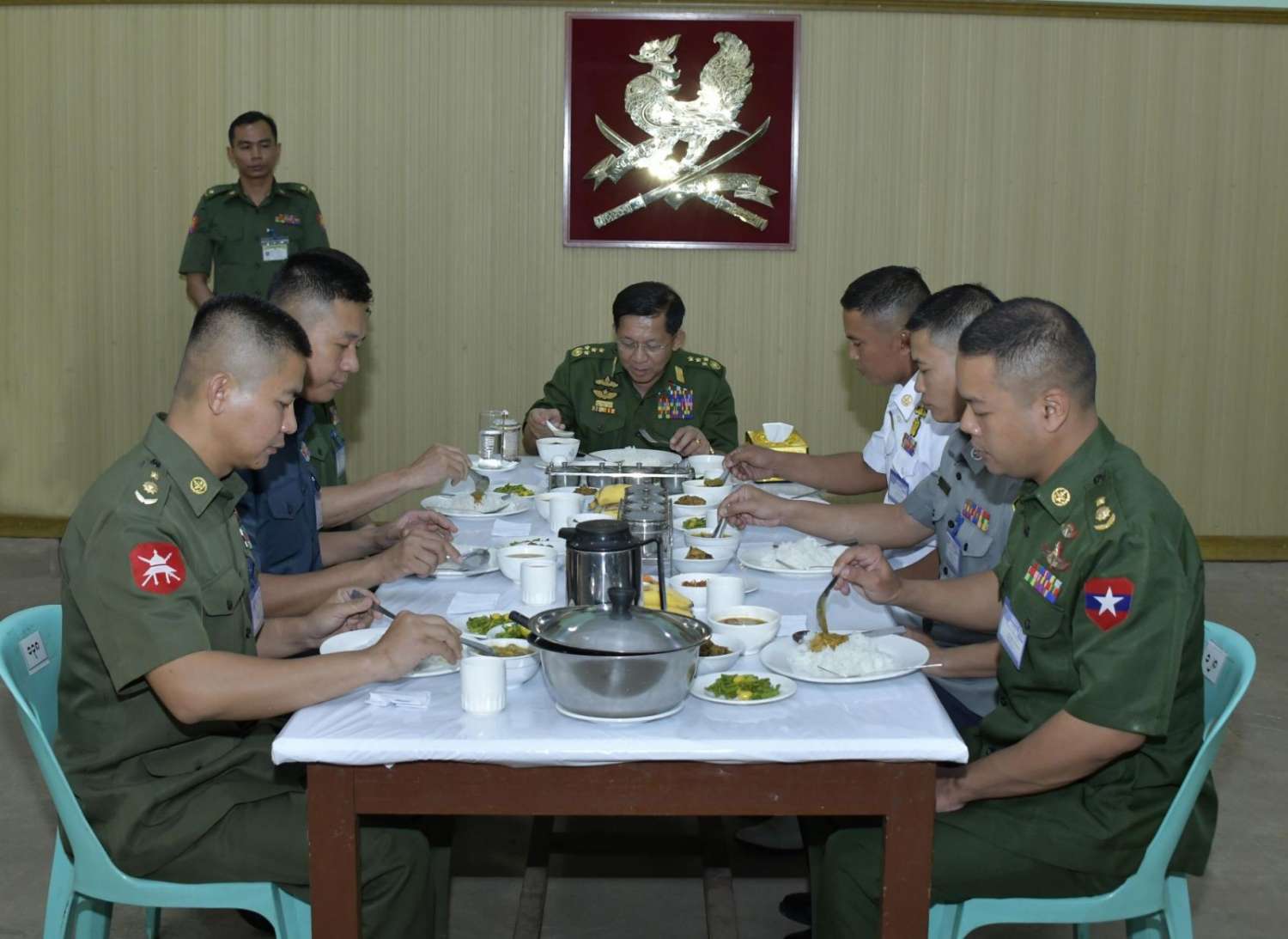 ထို့နောက် နိုင်ငံတော်စီမံအုပ်ချုပ်ရေးကောင်စီဥက္ကဋ္ဌ တပ်မတော်ကာကွယ်ရေးဦးစီးချုပ်နှင့် အဖွဲ့ဝင်များသည် စစ်ဦးစီးတက္ကသိုလ်မှ နည်းပြအရာရှိကြီးများ၊ သင်တန်းသားအရာရှိကြီးများနှင့်အတူ နေ့လယ်စာကို အတူတကွသုံးဆောင်ခဲ့ကြကြောင်း သတင်းရရှိသည်။