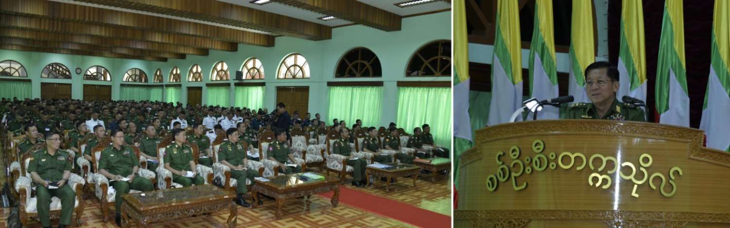 နိုင်ငံတော်စီမံအုပ်ချုပ်ရေးကောင်စီဥက္ကဋ္ဌ တပ်မတော်ကာကွယ်ရေးဦးစီးချုပ် ဗိုလ်ချုပ်မှူးကြီး မင်းအောင်လှိုင် စစ်ဦးစီးတက္ကသိုလ်မှ နည်းပြအရာရှိကြီးများနှင့် သင်တန်းသားအရာရှိကြီးများအား တွေ့ဆုံအမှာစကားပြောကြား