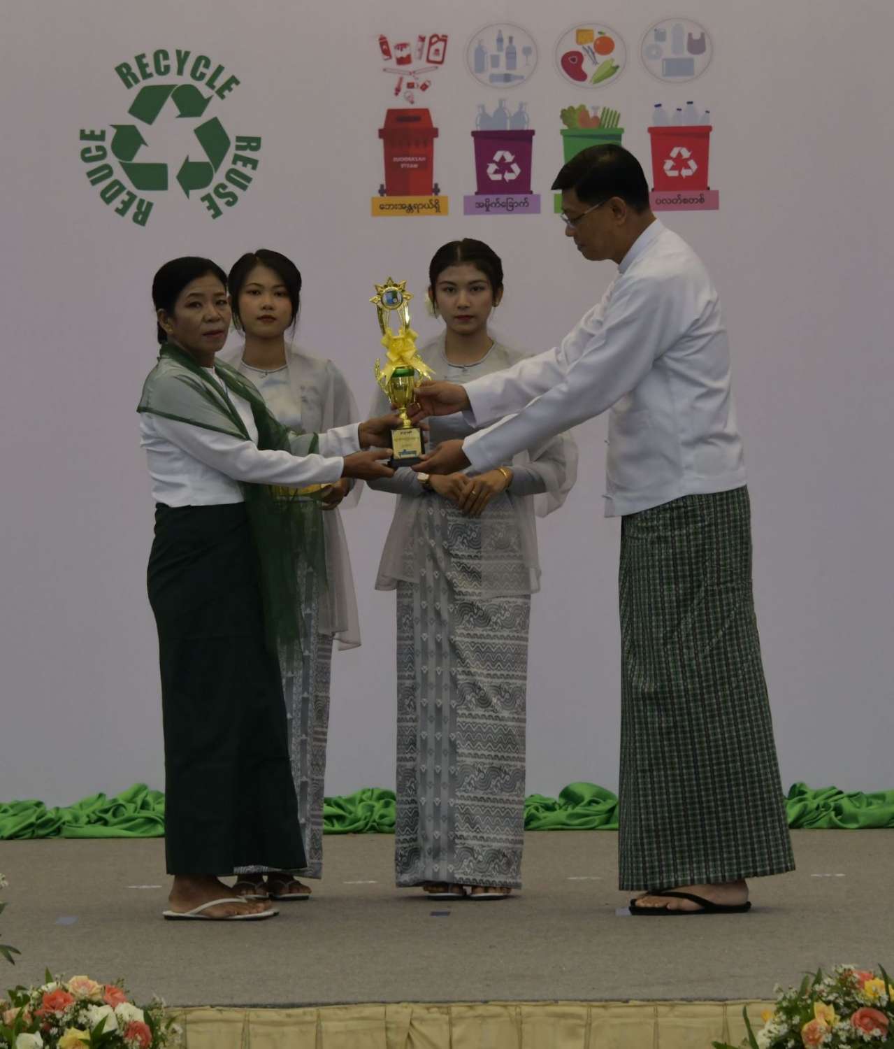 ယင်းနောက် ကောင်စီတွဲဖက်အတွင်းရေးမှူး ဒုတိယဗိုလ်ချုပ်ကြီး ရဲဝင်းဦးက အမျိုးသားအဆင့် သန့်ရှင်း၍ စိမ်းလန်းစိုပြည်သောကျောင်း (အထက်တန်းအဆင့်) ပထမ၊ ဒုတိယနှင့် တတိယဆုရရှိကြသည့် ကျောင်းများကိုလည်းကောင်း၊ ကောင်စီဝင် ဒုတိယဝန်ကြီးချုပ်နှင့် ပြည်ထောင်စုဝန်ကြီး ဗိုလ်ချုပ်ကြီး မြထွန်းဦးက စိမ်းလန်းစိုပြည်သောကျောင်း (မူလတန်းအဆင့်) ပထမ၊ ဒုတိယနှင့် တတိယဆုရရှိသည့် ကျောင်းများကိုလည်းကောင်း၊ ကောင်စီဝင် ဒုတိယဗိုလ်ချုပ်ကြီး မိုးမြင့်ထွန်းက ကမ္ဘာ့ပတ်ဝန်းကျင်ထိန်းသိမ်းရေးနေ့ အထိမ်းအမှတ် အလွတ်တန်းဆောင်းပါး ပထမ၊ ဒုတိယနှင့် တတိယဆုရရှိသူများကိုလည်းကောင်း၊ ကောင်စီဝင် ပြည်ထောင်စုဝန်ကြီး ဒုတိယဗိုလ်ချုပ်ကြီး စိုးထွဋ်က ကမ္ဘာ့ဝန်းကျင်ထိန်းသိမ်းရေးနေ့ အထိမ်းအမှတ် အလွတ်တန်းစာစီစာကုံး ပထမ၊ ဒုတိယနှင့် တတိယ ဆုရရှိသူများကိုလည်းကောင်း ဆုများပေးအပ်ချီးမြှင့်ကြသည်။