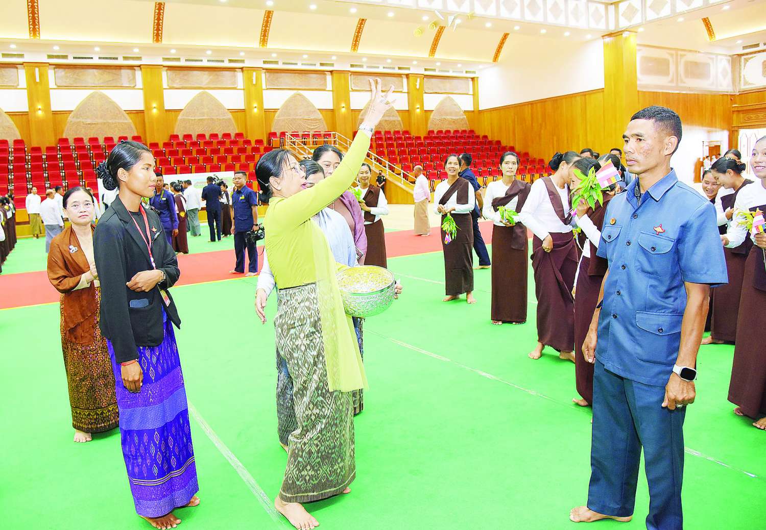 အခမ်းအနားသို့ ဦးဆောင်ဘုရားဒါယကာ နိုင်ငံတော်စီမံအုပ်ချုပ်ရေးကောင်စီဥက္ကဋ္ဌ နိုင်ငံတော်ဝန်ကြီးချုပ်ဗိုလ်ချုပ်မှူးကြီးမင်းအောင်လှိုင်နှင့်အတူ ဇနီးဒေါ်ကြူကြူလှ၊ ကောင်စီဒုတိယဥက္ကဋ္ဌ ဒုတိယဝန်ကြီးချုပ်ဒုတိယဗိုလ်ချုပ်မှူးကြီးစိုးဝင်း၊ ညှိနှိုင်းကွပ်ကဲရေးမှူး (ကြည်း၊ ရေ၊ လေ) ဗိုလ်ချုပ်ကြီးမောင်မောင်အေးနှင့်ဇနီး၊ ဆောက်လုပ်ရေးဝန်ကြီးဌာန ပြည်ထောင်စုဝန်ကြီးဦးမျိုးသန့်၊ နေပြည်တော်ကောင်စီဥက္ကဋ္ဌဦးတင်ဦးလွင်နှင့်ဇနီး၊ ကာကွယ်ရေးဦးစီးချုပ် (ရေ) နှင့်ဇနီး၊ ကာကွယ်ရေးဦးစီးချုပ်ရုံးမှ အဆင့်မြင့်တပ်မတော်အရာရှိကြီးများနှင့်ဇနီးများ၊ နေပြည်တော်တိုင်းစစ်ဌာနချုပ်တိုင်းမှူးနှင့် တာဝန်ရှိသူများ၊ ဝတ်အသင်းအဖွဲ့များ တက်ရောက်ပူဇော်ကြသည်။