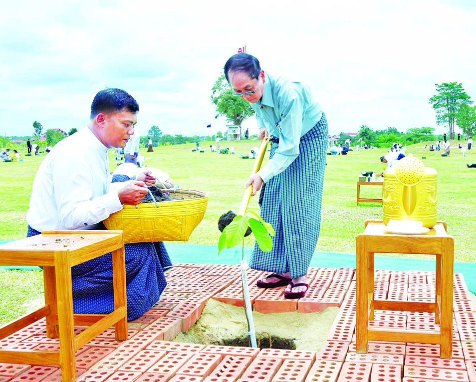 ၎င်းနောက် ဦးဆောင်ဘုရားဒါယကာ နိုင်ငံတော်စီမံအုပ်ချုပ်ရေးကောင်စီဥက္ကဋ္ဌ နိုင်ငံတော်ဝန်ကြီးချုပ်နှင့်ဇနီး၊ အခမ်းအနားတက်ရောက်လာကြသူများသည် လုမ္ဗိနီအင်ကြင်းပင်များကို စုပေါင်းစိုက်ပျိုးကြသည်။