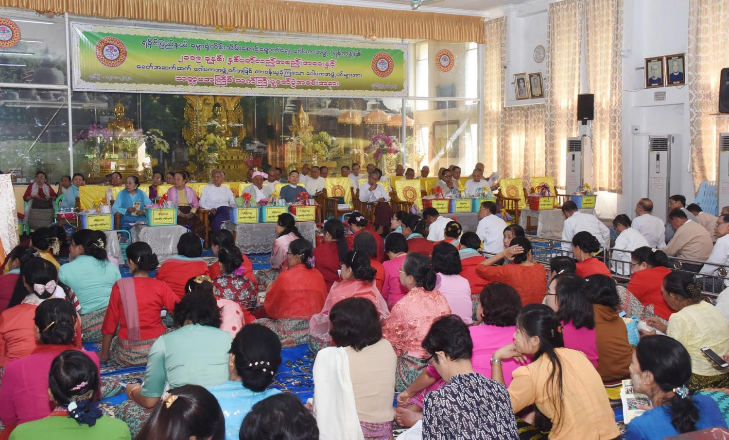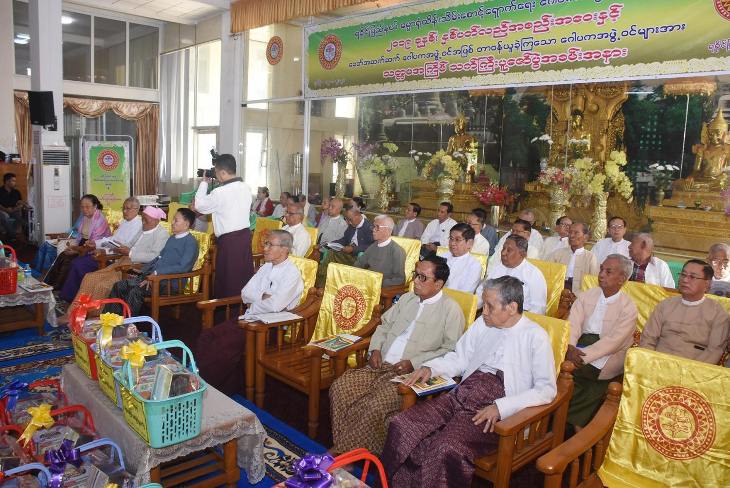 ရခိုင်ပြည်နယ် ဓမ္မာရုံထိန်းသိမ်းစောင့်ရှောက်ရေး ဂေါပကအဖွဲ့(ရန်ကုန်)၏ ၂၀၁၉ ခုနှစ် နှစ်ပတ်လည်အစည်းအဝေးနှင့် ခေတ်အဆက်ဆက် ဂေါပကအဖွဲ့ဝင်အဖြစ် တာဝန်ယူခဲ့ကြသော ဂေါပကအဖွဲ့ဝင်များအား သတ္တမ အကြိမ်မြောက် သက်ကြီးပူဇော်ပွဲ အခမ်းအနားကို ယနေ့နံနက် ၉ နာရီတွင် ရန်ကုန်မြို့ ရွှေတိဂုံဘုရားအရှေ့ဘက်မုခ် အနီးရှိ ရခိုင်ပြည်နယ် ဓမ္မာရုံ၌ ကျင်းပသည်။