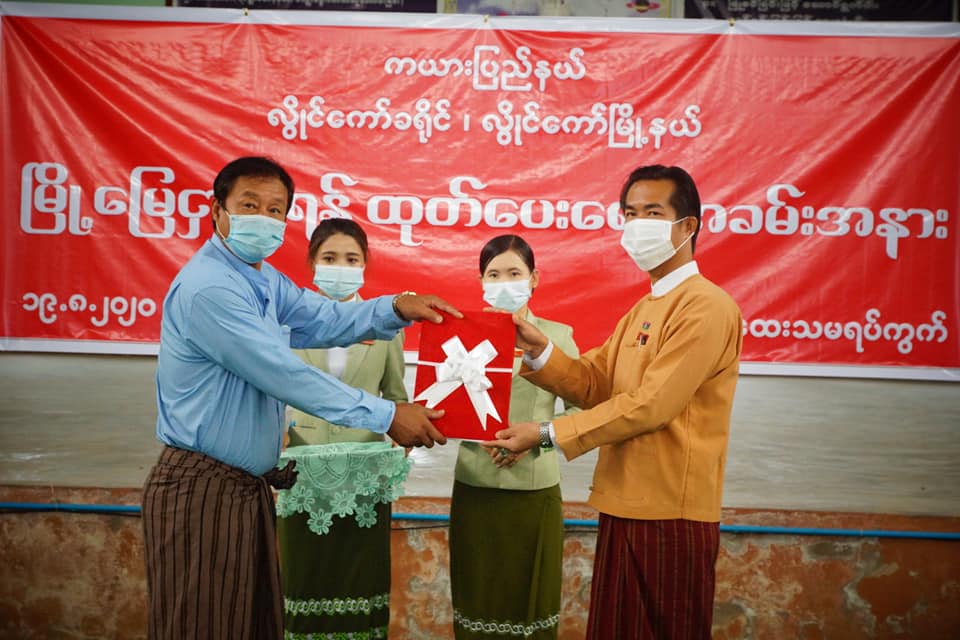 ကယားပြည်နယ် အစိုးရအဖွဲ့အနေဖြင့် ပြည်နယ်အတွင်းရှိ မြို့နယ်အသီးသီးမှ ပြည်သူများ၏ စိတ်ပိုင်းဆိုင်ရာ လုံခြုံမှုနှင့် ရုပ်ပိုင်းဆိုင်ရာ လုံခြုံမှုများ ရှိစေရန်အတွက် မြေငှားဂရန် ထုတ်ပေးခြင်းများကို စီမံချက်များရေးဆွဲ ဆောင်ရွက်ပြီး မူဝါဒ၊ လုပ်ထုံး လုပ်နည်းများနှင့် အညီ ပြည်သူများသို့ မြေငှားဂရန်များ ထုတ်ပေး ဆောင်ရွက်လျက်ရှိရာ လွိုင်ကော်မြို့၊ ထေးသမ ရပ်ကွက်နှင့် နမ့်ကွတ်ရပ်ကွက်မှ မြေငှားဂရန် လျှောက်ထားသည့် ပြည်သူများထံသို့ မြေငှားဂရန် ပေးအပ်ခြင်း အခမ်းအနားအား ယနေ့နံနက်ပိုင်းတွင် ထေးသမရပ်ကွက်နှင့် နမ့်ကွတ် ရပ်ကွက် ခန်းမဆောင်၌ ကျင်းပ ပြုလုပ်ခဲ့သည်။