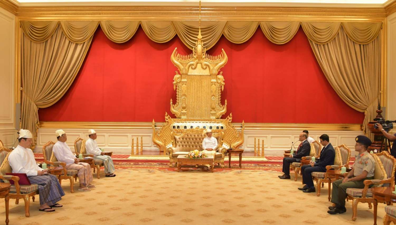 နိုင်ငံတော်စီမံအုပ်ချုပ်ရေးကောင်စီဥက္ကဋ္ဌ နိုင်ငံတော်ဝန်ကြီးချုပ် ဗိုလ်ချုပ်မှူးကြီး မင်းအောင်လှိုင်ထံ မြန်မာနိုင်ငံဆိုင်ရာ ဘင်္ဂလားဒေ့ရှ်နိုင်ငံ သံအမတ်ကြီးအဖြစ်ခန့်အပ်ရန် သဘောတူညီပြီးဖြစ်သော သံအမတ်ကြီး H.E. Dr. Md. Monwar Hossain သည် ယနေ့နံနက် ၁၀ နာရီတွင် နေပြည်တော်ရှိ နိုင်ငံတော်စီမံအုပ်ချုပ်ရေးကောင်စီဥက္ကဋ္ဌရုံး၊ သံတမန်ဆောင်ဧည့်ခန်းမ၌ ၎င်း၏သံအမတ်ခန့်အပ်လွှာကိုပေးအပ်သည်။