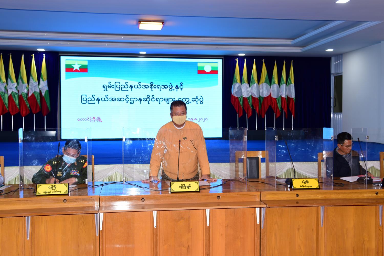 ရှမ်းပြည်နယ်အစိုးရအဖွဲ့၊ ပြည်နယ်ဝန်ကြီးချုပ်နှင့် ပြည်နယ်အဆင့်ဌာနဆိုင်ရာများ တွေ့ဆုံခြင်းကို ယမန်နေ့ ညနေ ၃ နာရီအချိန် က တောင်ကြီးမြို့၊ ရှမ်းပြည်နယ်အစိုးရအဖွဲ့ရုံး အစည်းအဝေးခန်းမ၌ ကျင်းပသည်။