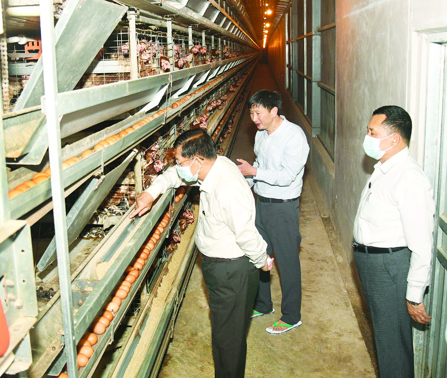 ထို့နောက် နိုင်ငံတော်စီမံအုပ်ချုပ်ရေးကောင်စီဥက္ကဋ္ဌ၊ နိုင်ငံတော်ဝန်ကြီးချုပ်နှင့် အဖွဲ့ဝင်များသည် ရှမ်းရိုးမမွေးမြူရေးဇုန်အတွင်းရှိ ဒေါက်တာစိုင်းလုံ၏ အလုံပိတ် အအေးခန်းစနစ်(Evaporated Cooling System) ဖြင့် အဆင့်မြင့်ကြက်မွေးမြူရေး ဆောင်ရွက်ထားရှိမှုကို သွားရောက်ကြည့်ရှုအားပေးခဲ့ပြီး မွေးမြူရေးကဏ္ဍဖွံ့ဖြိုး တိုးတက်ရေးအတွက် လုပ်ဆောင်နိုင်မည့်အခြေအနေများနှင့်ပတ်သက်၍ လိုအပ်သည်များ ဆွေးနွေးမှာကြားခဲ့ကြောင်း သတင်းရရှိသည်။