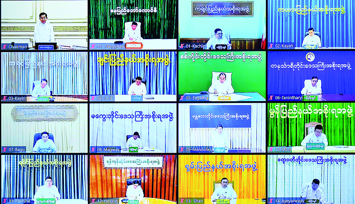အစည်းအဝေးသို့ ပြည်ထောင်စုဝန်ကြီးများနှင့် တာဝန်ရှိသူများတက်ရောက်ကြပြီး နေပြည်တော်ကောင်စီဥက္ကဋ္ဌ၊ တိုင်းဒေသကြီးနှင့် ပြည်နယ်ဝန်ကြီးချုပ်များက Video Conferencing ဖြင့် တက်ရောက်ကြသည်။